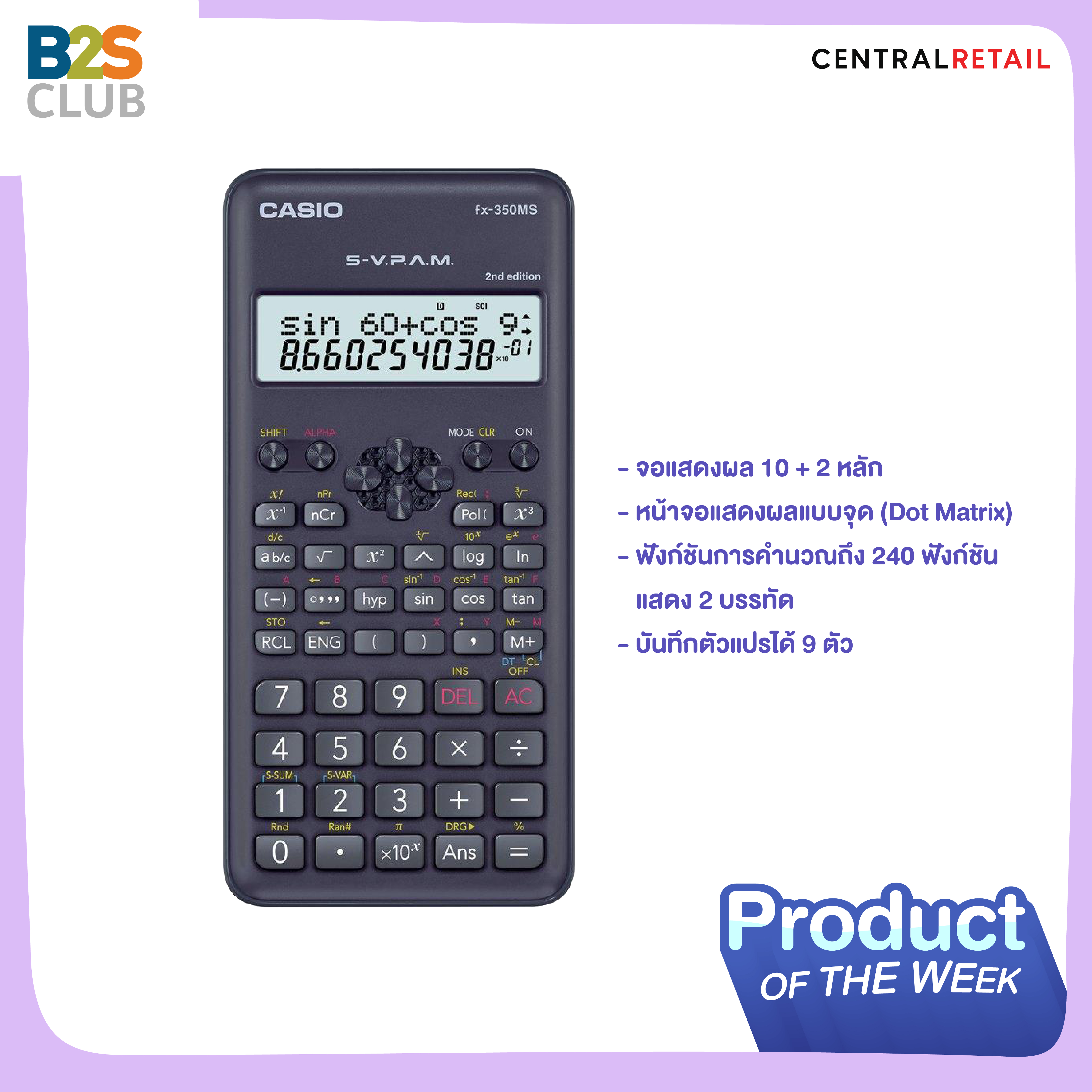 สวัสดีค่ะชาวคลับ พบกับ product of the week กันทุกสัปดาห์ ใกล้วันวิทยาศาสตร์แล้ว เอาใจนักเรียน นักศึกษา หรือคนที่ชอบคิดเลขที่มีสูตรต่าง ๆ ด้วยเครื่องคิดเลขวิทยาศาสตร์จากแบรนด์ Casio รุ่น  fx-350MS  2nd  edition ที่ช่วยแก้โจทย์คำนวณซับซ้อนได้ง่าย ๆ ด้วยฟังก์ชั่นในตัวเครื่อง