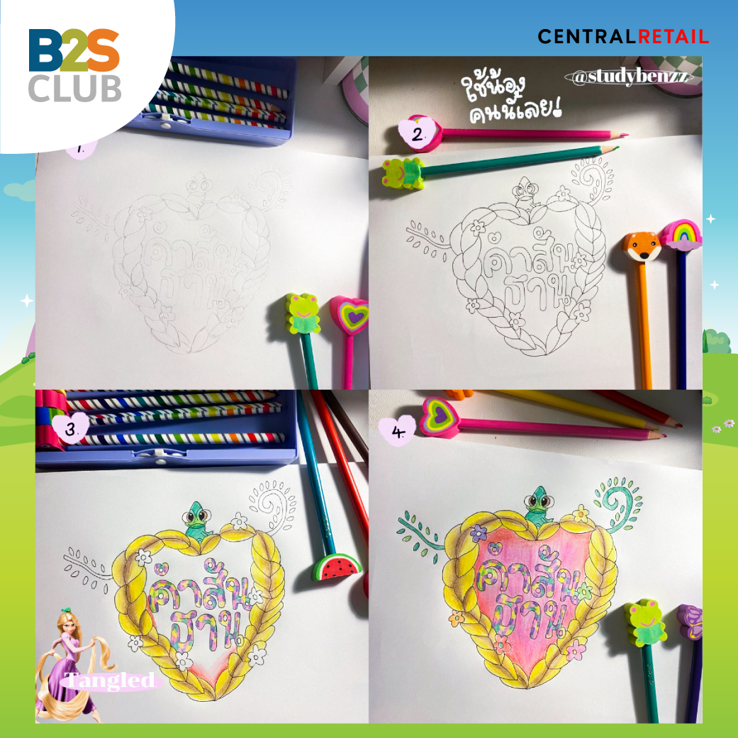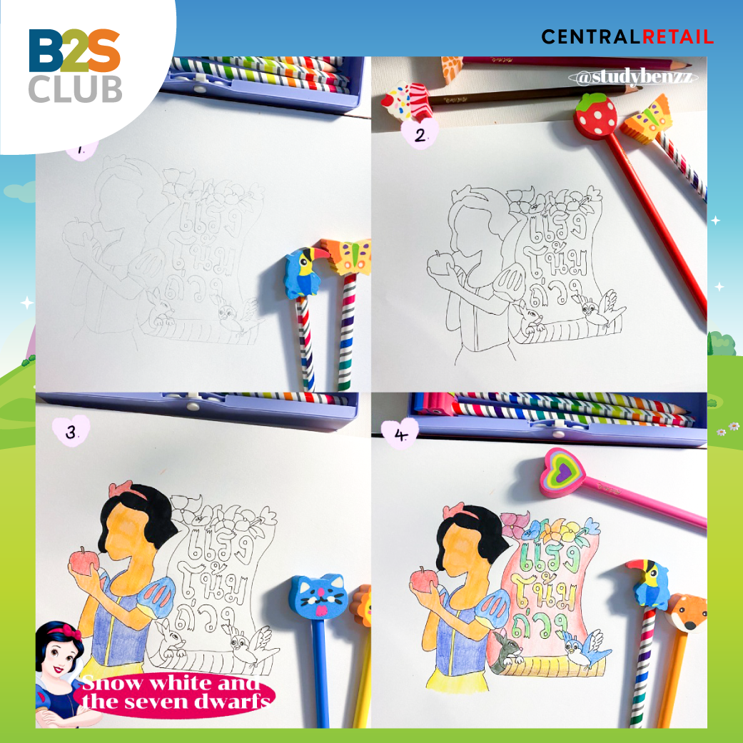 ปิดท้ายด้วยตัวละครจากเรื่อง Aladdin จีนี่กับพรมวิเศษ ใช้สีม่วง น้ำเงิน และเหลือง เข้ากันอย่างดี ไล่สีอ่อนเข้มด้วยสีไม้คุณภาพสูง เม็ดสีแน่น เนื้อเนียนนุ่มเกลี่ยง่าย หากกำลังมองหาสีไม้คุณภาพดีอยู่ละก็ ขอแนะนำ Montmarte ดินสอสีไม้ 2 หัว 24 ด้าม หลากหลายเฉดสีให้เลือกใช้จุใจ สั่งซื้อได้ที่นี่ คลิก