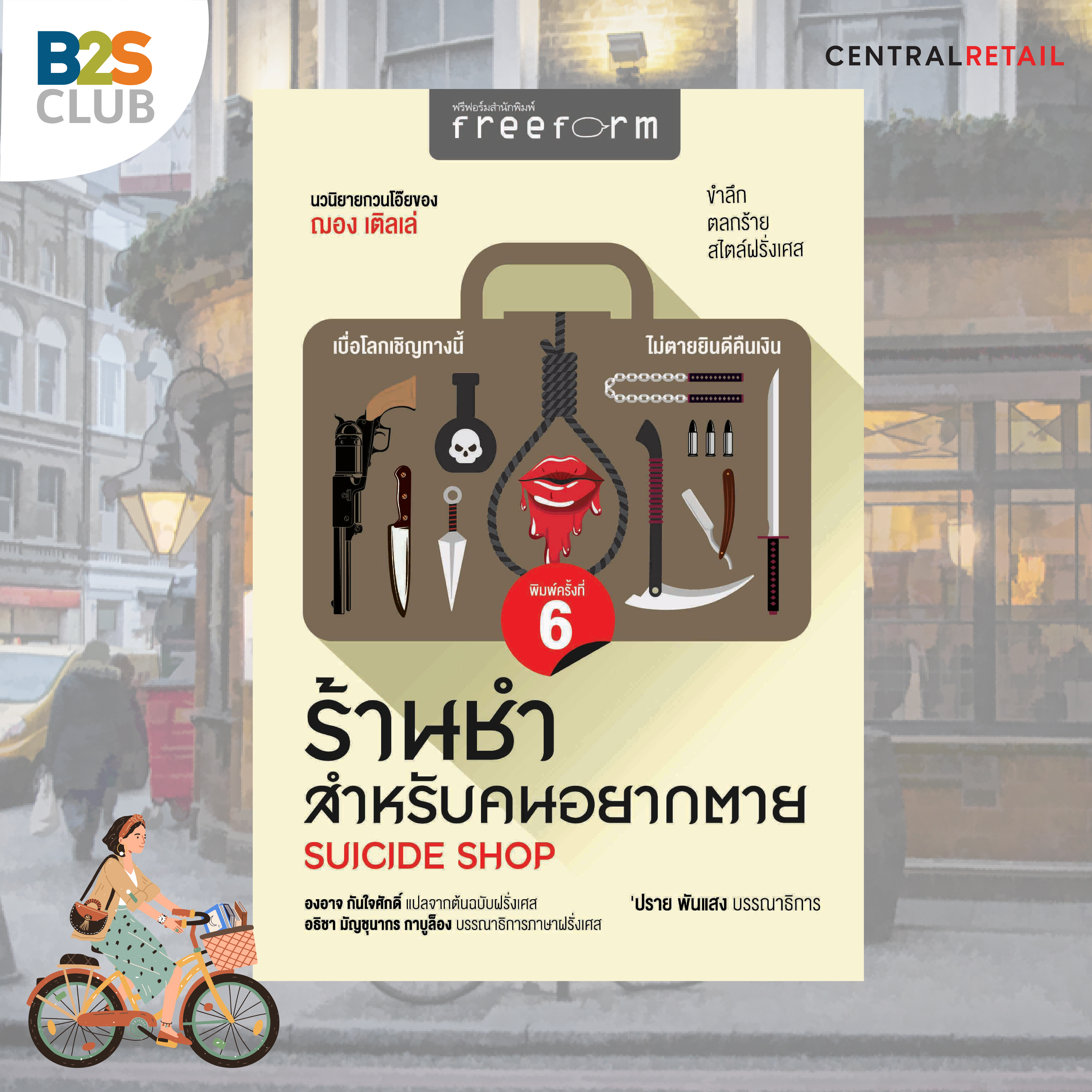 แม้ล้มเหลวทุกเรื่องในชีวิต อย่างน้อยคุณยังมีสิทธิประสบความสำเร็จในการตาย! ในโลกที่ความเชื่อและการตีตราทางศาสนาได้เลือนหายไป การฆ่าตัวตายไม่ใช่เรื่องผิดบาป “ร้านของชำสำหรับคนอยากตาย” หรือ “Suicide Shop” ก็ได้ถือกำเนิดขึ้นโดยมีสโลแกนของร้านว่า ‘ไม่ตายยินดีคืนเงิน’ เจ้าของกิจการคือตระกูลคนหน้านิ่งที่ไม่เคยยิ้มอย่างตระกูลตูวาช แต่แล้ววันหนึ่งทุกอย่างกลับเปลี่ยนไปเมื่อ “อลัน” ได้ถือกำเนิดขึ้นมาพร้อมกับความสดใส และการมองโลกในแง่บวก ความคิดของคนในตระกูลนี้จะเปลี่ยนไปหรือไม่มาลุ้นไปพร้อม ๆ กัน นวนิยายกวนโอ๊ยของ "ฌอง เติลเล่" ขำลึก ตลกร้าย สไตล์ฝรั่งเศส ที่ชวนให้คุณทำความรู้จักและเป็นมิตรกับความตายมากขึ้น