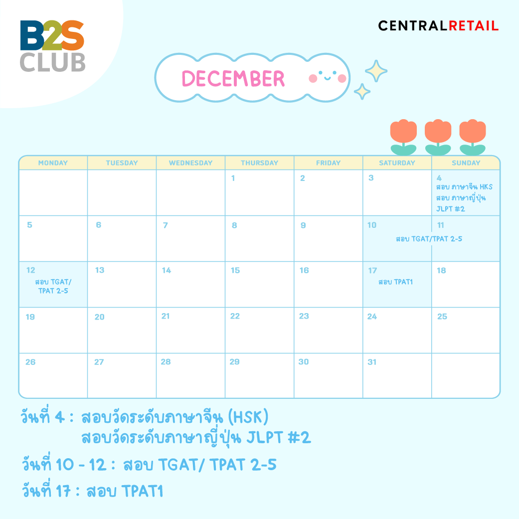 ใกล้เข้ามาแล้ว! มาดูกันว่าใน 6 เดือนข้างหน้ามีวันสอบสำคัญระดับประเทศอะไรบ้าง เตรียมจดปฏิทินของตัวเองให้ดี แล้วนับถอยหลังเตรียมสอบไปพร้อม ๆ กัน B2S CLUB มาช่วยเตือน เราทำตารางสอบมาให้แล้ว สามารถเซฟเก็บไว้ในมือถือได้เลย