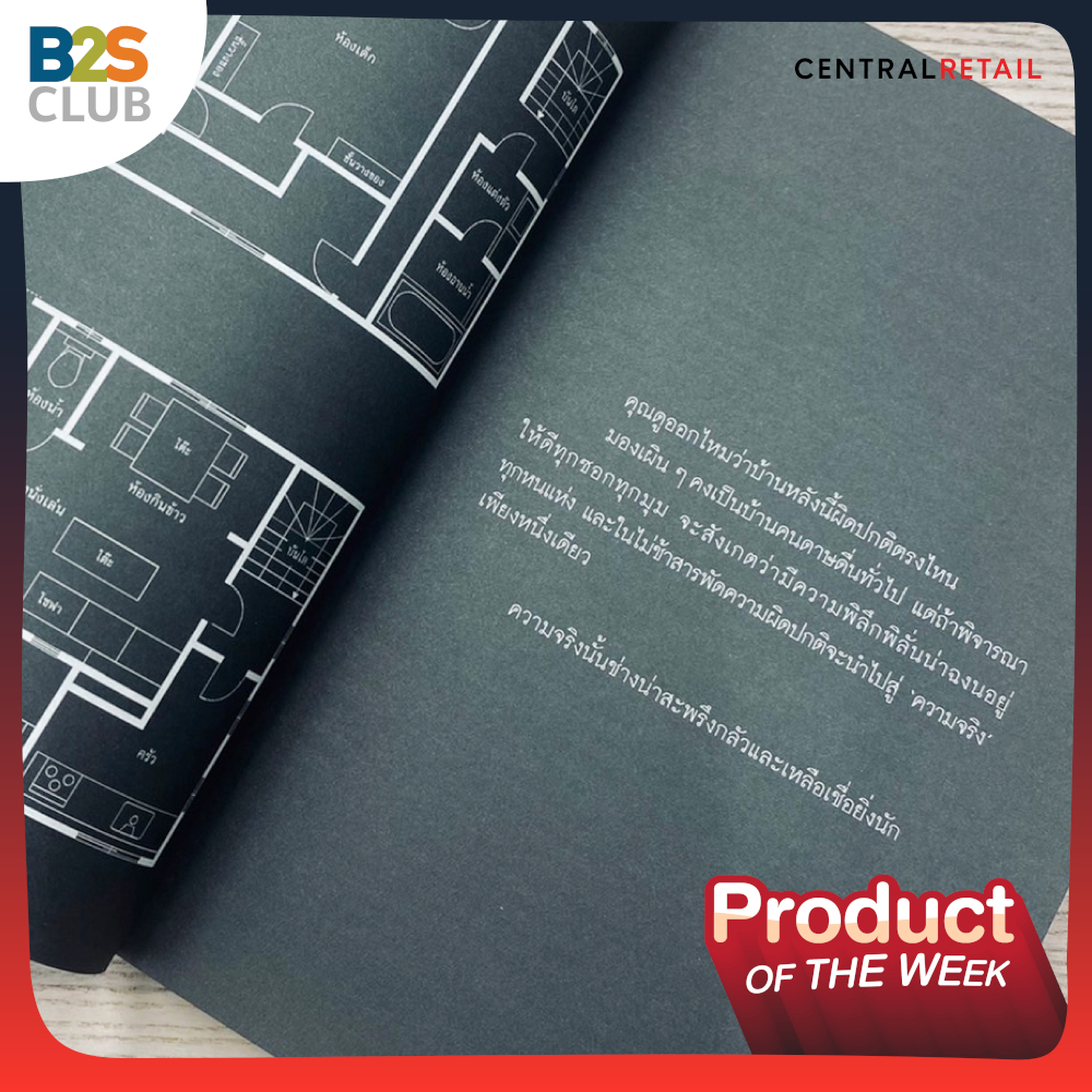 ตอนแรกเราเห็นกระแสใน Twitter ที่มีรูปผังบ้านแปลก ๆ และมีเพื่อน ๆ retweet กันเยอะมาก เลยเกิดความสงสัยว่าคืออะไร พอลองไปหาดูจึงได้รู้ว่ามาจากหนังสือนิยายญี่ปุ่นเล่มหนึ่ง ก็ไม่พลาดที่จะออกตามหาซื้อหนังสือเล่มนี้ในงานมหกรรมหนังสือที่ผ่านมา แค่เพียงโปรยปกหลังก็ทำให้เราควักเงินซื้อกลับบ้านได้ไม่ยาก ถ้าสังเกตดูดี ๆ ดีเทลบนปกหน้าทำเป็นลายแผนผังของบ้าน