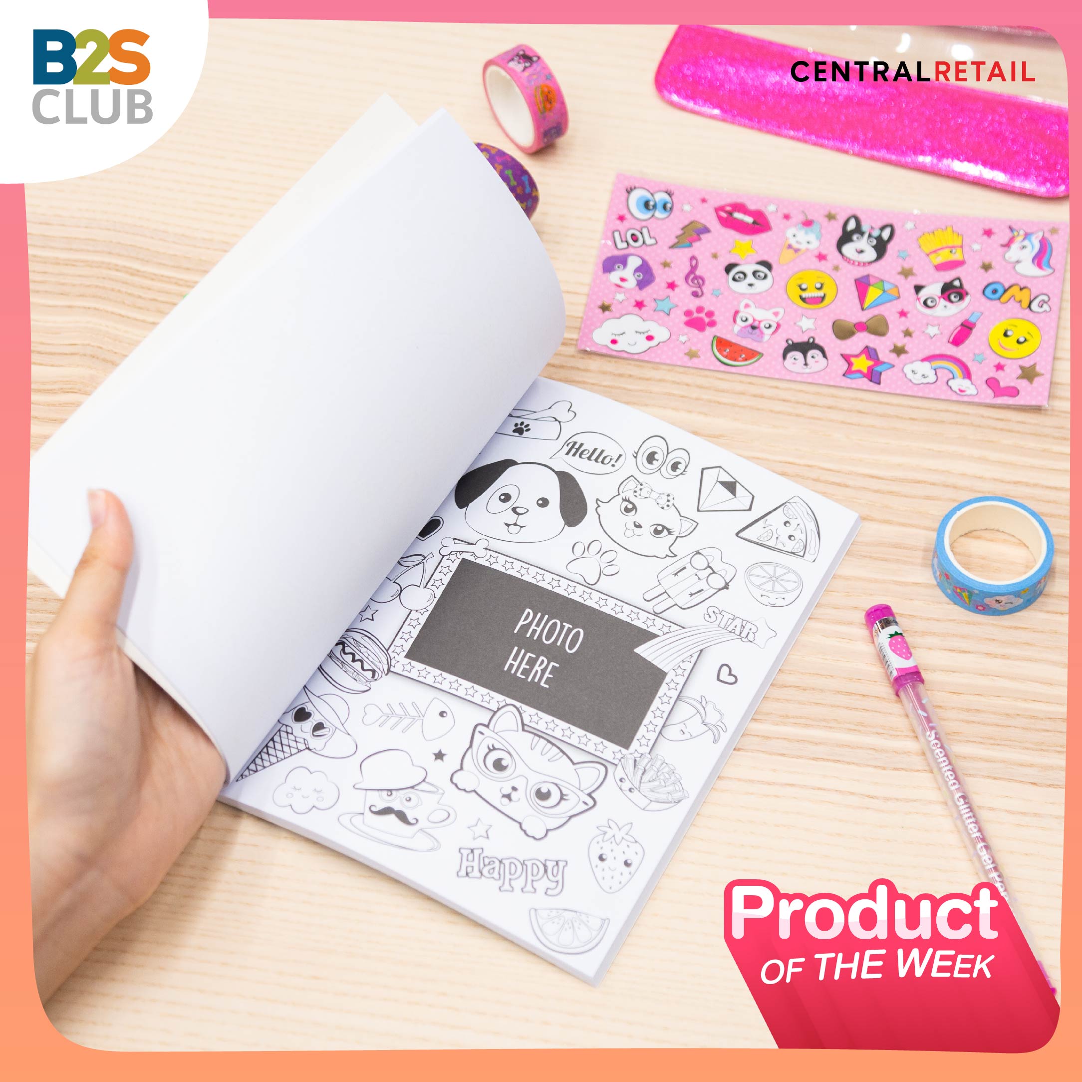 What: Creating Fun Book เซ็ตสมุดบันทึก Scrapbook และอุปกรณ์เครื่องเขียน พร้อมของตกแต่ง ภายในเซ็ตประกอบด้วยสมุด Scrapbook 1 เล่ม ปากกาเจลสีกลิตเตอร์กลิ่นหอม 3 แท่ง ปากกาเมจิกสี 4 แท่ง กระเป๋่าดินสอ 1 ใบ สติ๊กเกอร์ตกแต่งที่มีกลิ่นหอม 2 แผ่น และวาชิเทป (Washi Tape) หรือเทปตกแต่ง ลวดลายต่างกัน 4 ม้วน ซึ่งด้านในสมุดจะมีส่วนหน้ากระดาษเปล่า 60 แผ่น และส่วนที่พิมพ์ลวดลาย 10 แผ่น ไว้ติดรูป ระบายสี หรือติดสติ๊กเกอร์ได้ตามชอบ