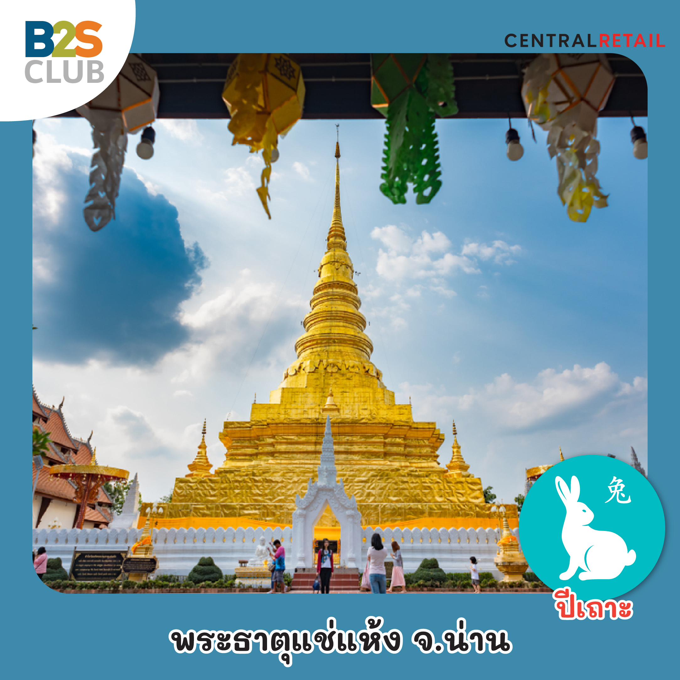 เริ่มต้นจากนักษัตรปี 2566 นั่นคือ ปีเถาะหรือปีกระต่าย ได้แก่เด็ก ๆ ที่เกิดปีพ.ศ.2542 และ 2554 หากคุณพ่อคุณแม่อยากพาลูกไปไหว้พระขอพรรับปีใหม่ ขอแนะนำให้เดินทางไปที่ พระธาตุแช่แห้ง ซึ่งเป็นโบราณสถานเก่าแก่อายุกว่า 600 ปีตั้งแต่ยุคสมัยสุโขทัย ตั้งอยู่ที่อำเภอภูเพียง จังหวัดน่าน พระธาตุแห่งนี้เป็นที่เคารพสักการะของชาวน่านและชาวล้านนา อีกทั้งยังเป็นที่ประดิษฐานพระบรมสารีริกธาตุ ชาวล้านนาเชื่อกันว่าหากสักการะบูชาพระธาตุแห่งนี้จะเกิดบารมี ได้รับการอุปถัมป์ค้ำชู มีชื่อเสียง ลาภยศ และความมั่นคง