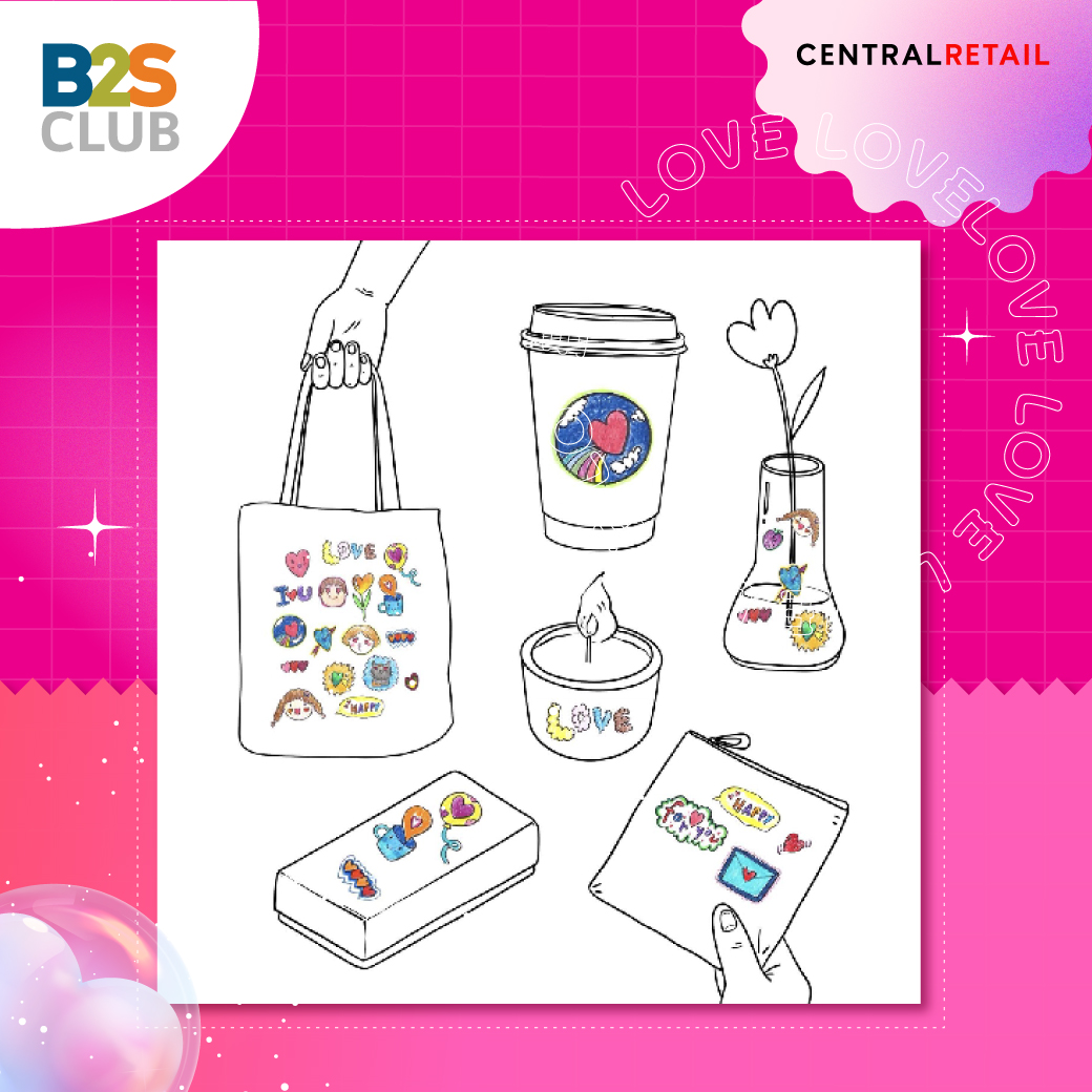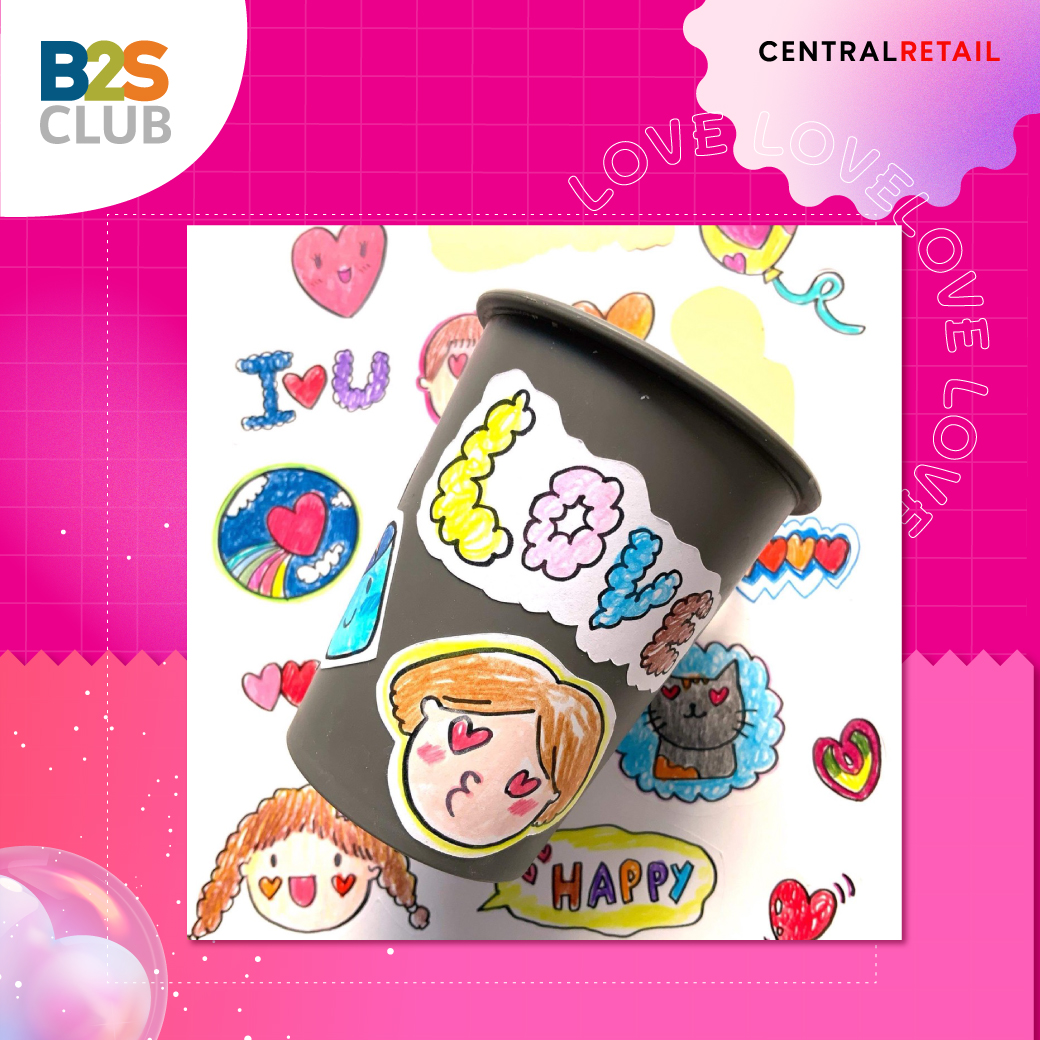 ลอกและนำสติ๊กเกอร์ไปติดตกแต่ง สิ่งของ แก้วน้ำ กล่องดินสอ ห่อขนม หรือของขวัญที่ต้องการมอบให้คนที่เรารัก