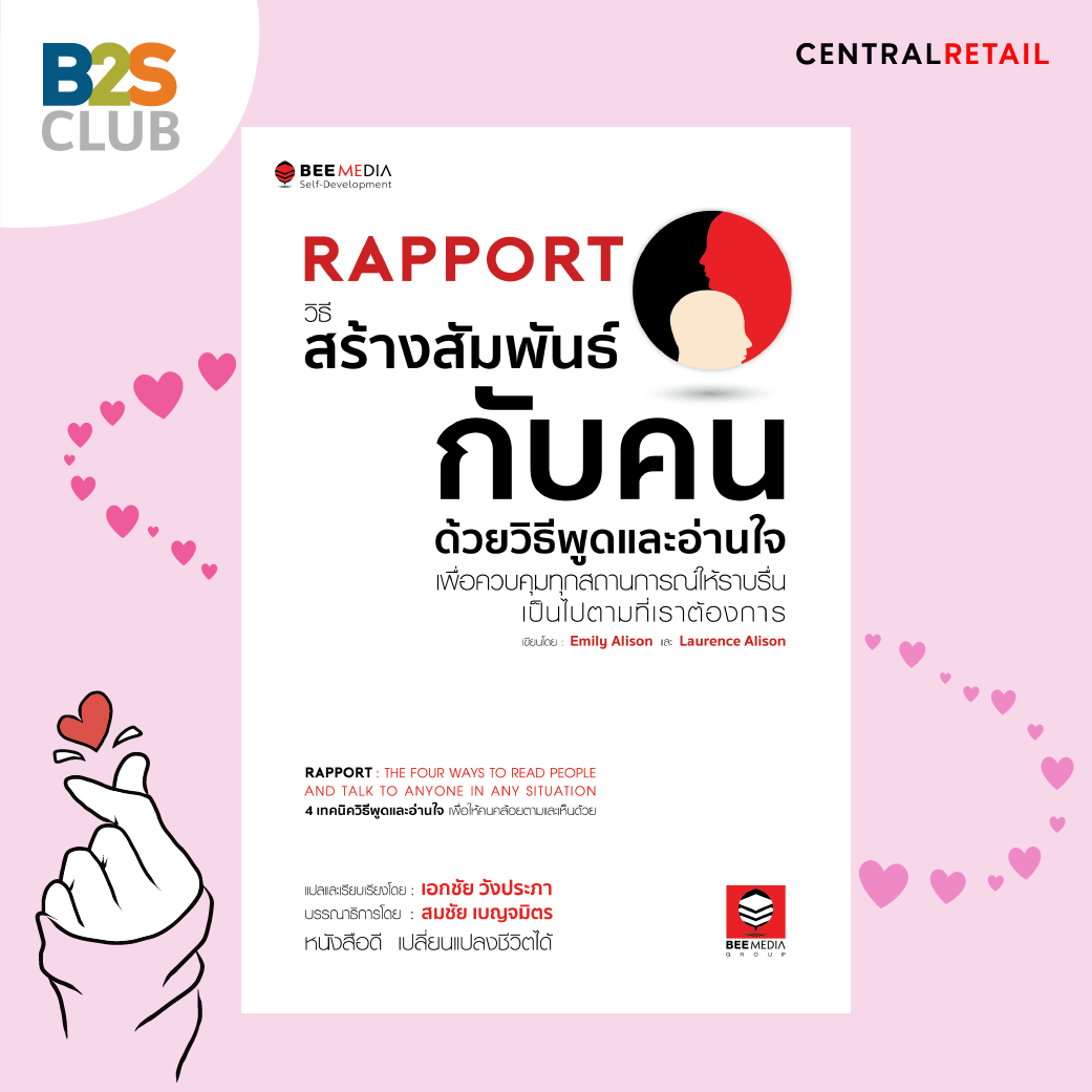 เพื่อควบคุมทุกสถานการณ์ให้ราบรื่น เป็นไปตามที่เราต้องการ หนึ่งเรื่องที่สำคัญในชีวิตของคนเรา คือ การสร้างสัมพันธ์กับคน จะดีแค่ไหนหากสามารถอ่านใจคน วิเคราะห์สถานการณ์และมีวิธีพูดที่ดี ซึ่งทำให้เราสามารถควบคุมสถานการณ์ที่ดูเหมือนเลวร้ายให้ราบรื่นได้ หนังสือ RAPPORT เล่มนี้จะพาผู้อ่านไปพบกับ 4 เทคนิควิธีพูดและอ่านใจที่ช่วยพัฒนาทักษะการสื่อสาร วิธีสร้างสัมพันธ์ด้วยการพยายามทำความเข้าใจผู้อื่นให้ดีขึ้นกว่าเดิมรับรองว่าเมื่อหนังสือเล่มนี้จบ และพยายามฝึกฝนมันบ่อย ๆ คุณจะกลายเป็นนักสร้างปฏิสัมพันธ์ชั้นยอดเลยทีเดียว