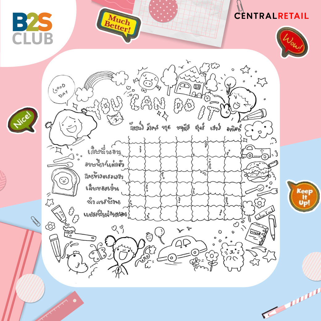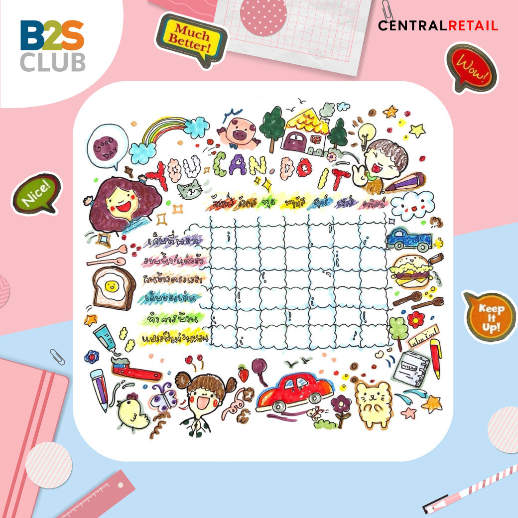 เพียงแค่วาดตารางง่ายๆ แบบที่น้อง ๆ ทุกคนทำได้เอง ใช้คู่กับชุดสติ๊กเกอร์เลเซอร์ ฟีลกู๊ด จากลาบูม คลิก