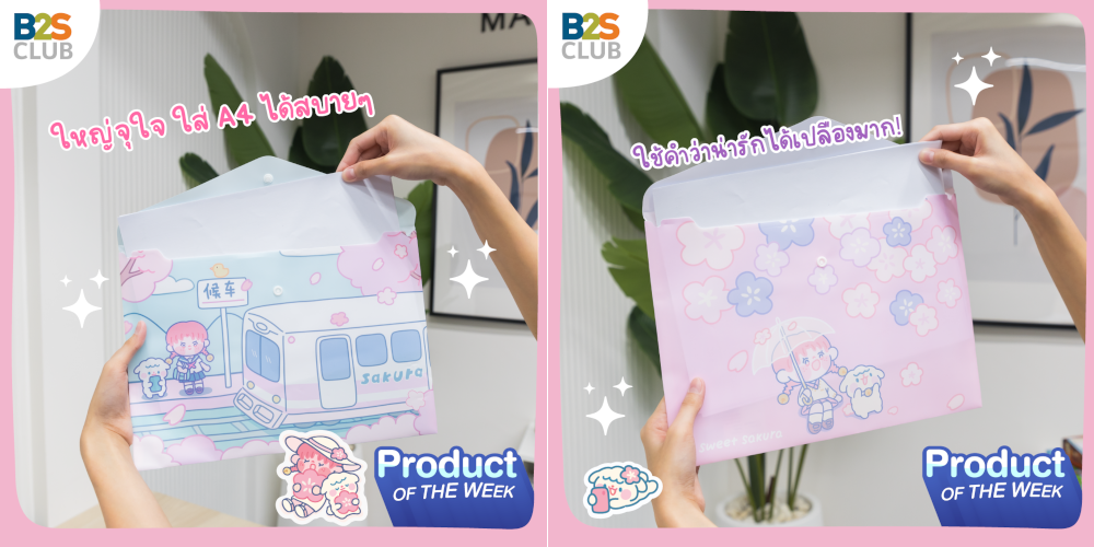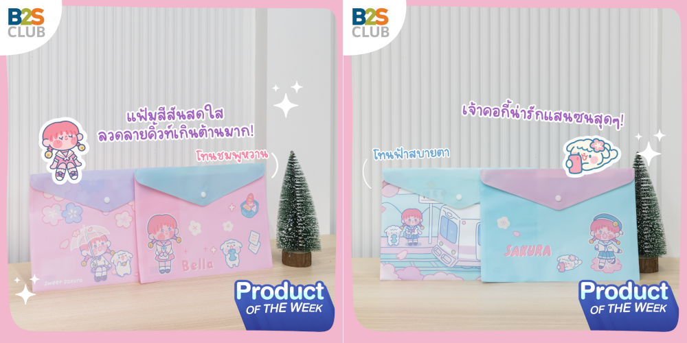 ต่อด้วยแฟ้ม ใครมีเอกสารต้องเก็บเยอะ แฟ้มนี้เหมาะมาก! ใหญ่จุใจ เปิดปิดง่าย ลายเด่น ใครเห็นก็รู้ว่าเป็นของเรา มีให้เลือก 2 โทนไปเลย โทนชมพูก็น่ารักหวานจับใจ โทนฟ้าก็เท่ไม่ไหว