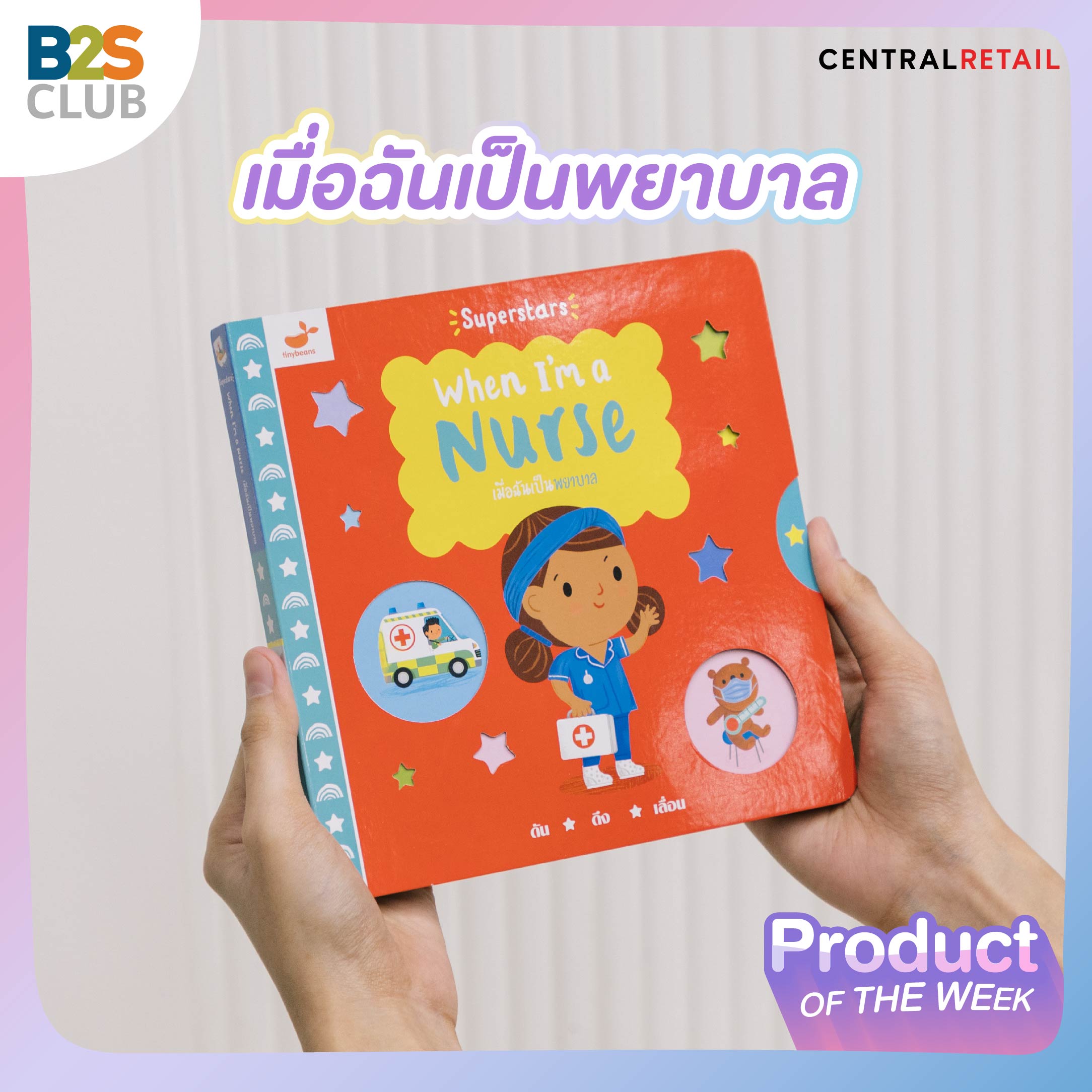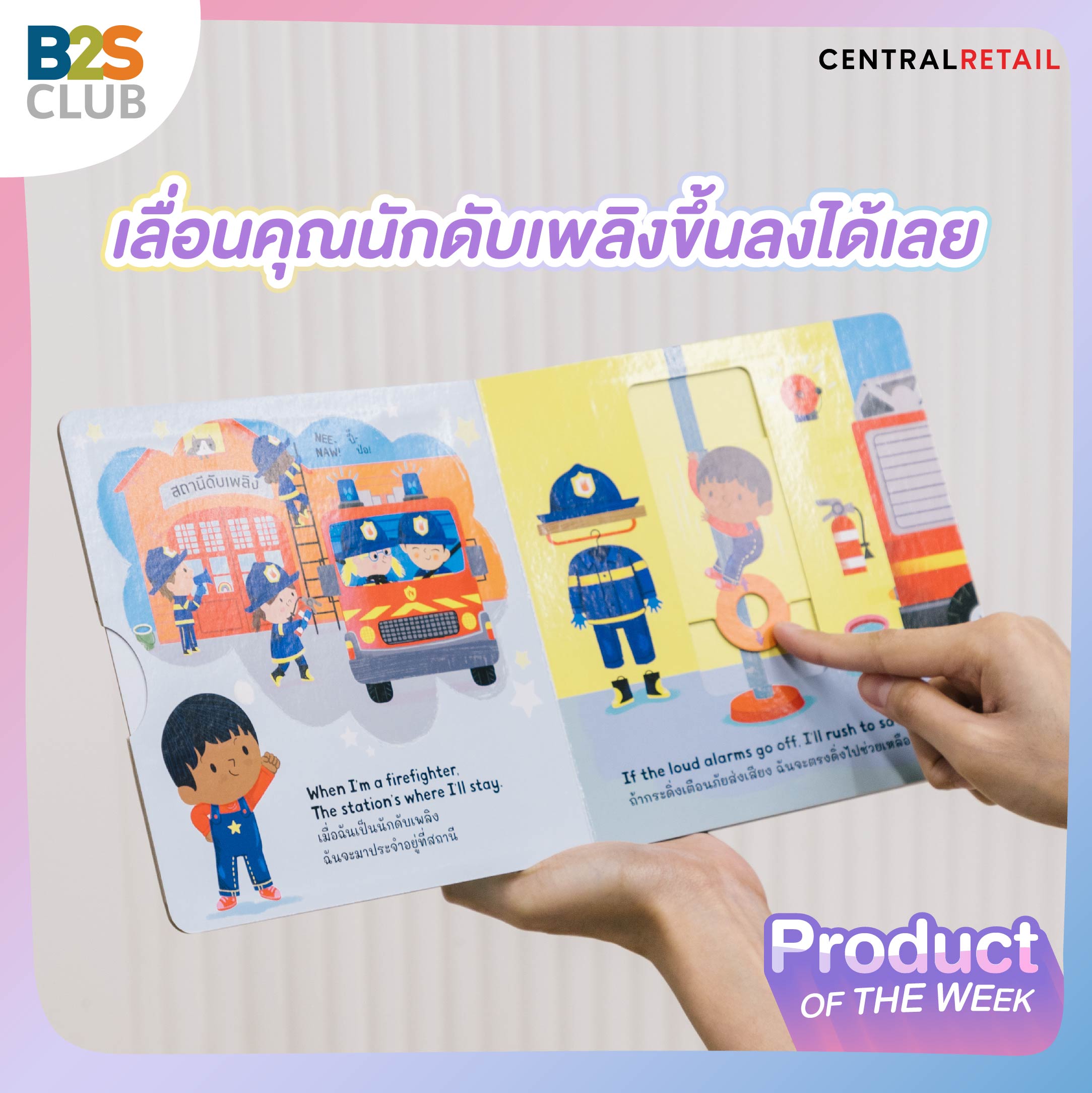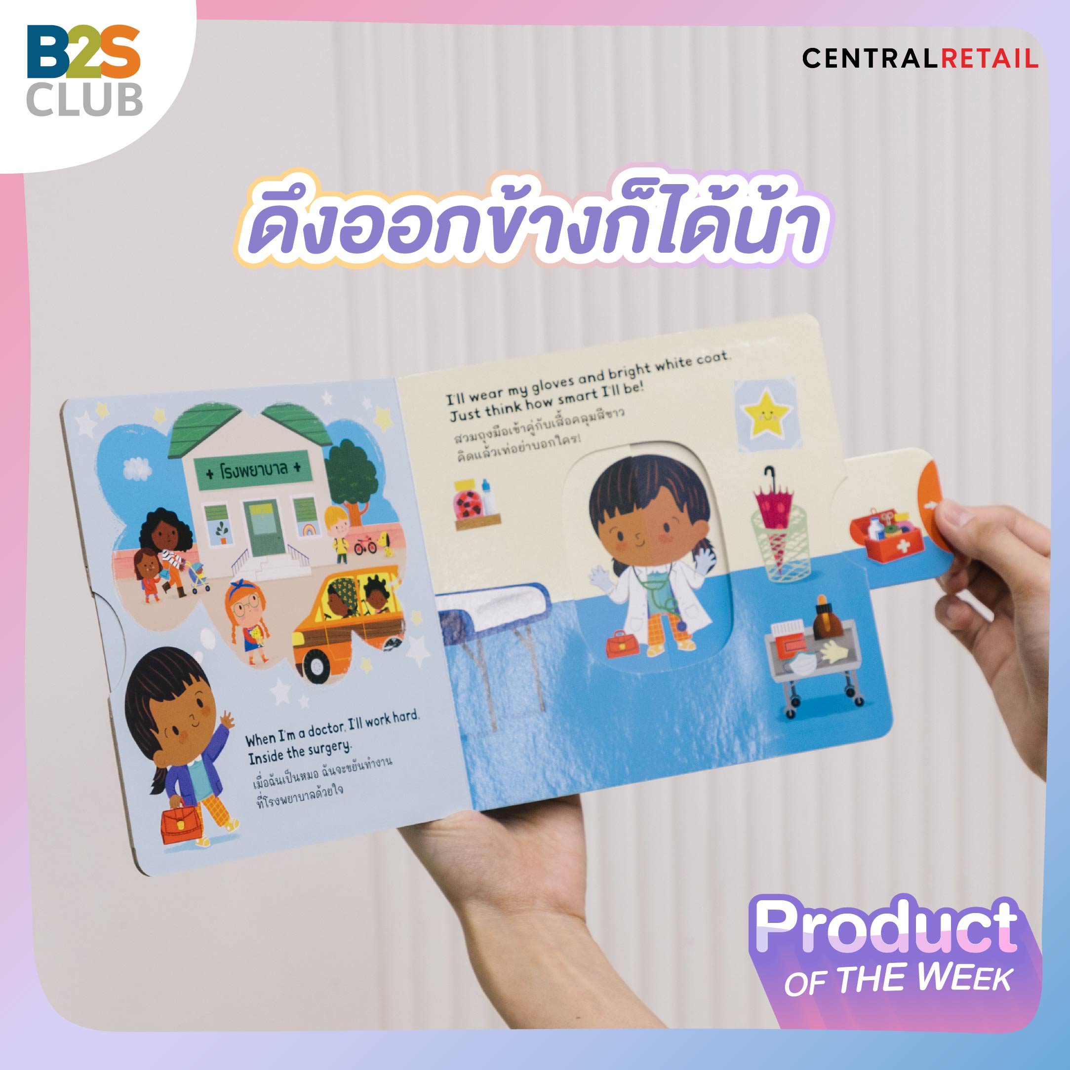 What: หนังสือบอร์ดบุ๊กแนวใหม่ ให้ความรู้เกี่ยวกับอาชีพต่างๆ ที่จะช่วยให้น้อง ๆ กล้าคิดกล้าฝัน และสนุกไปกับการอ่านแบบ "ดัน-ดึง-เลื่อน" เหมาะสำหรับเด็กวัยหัดเดิน