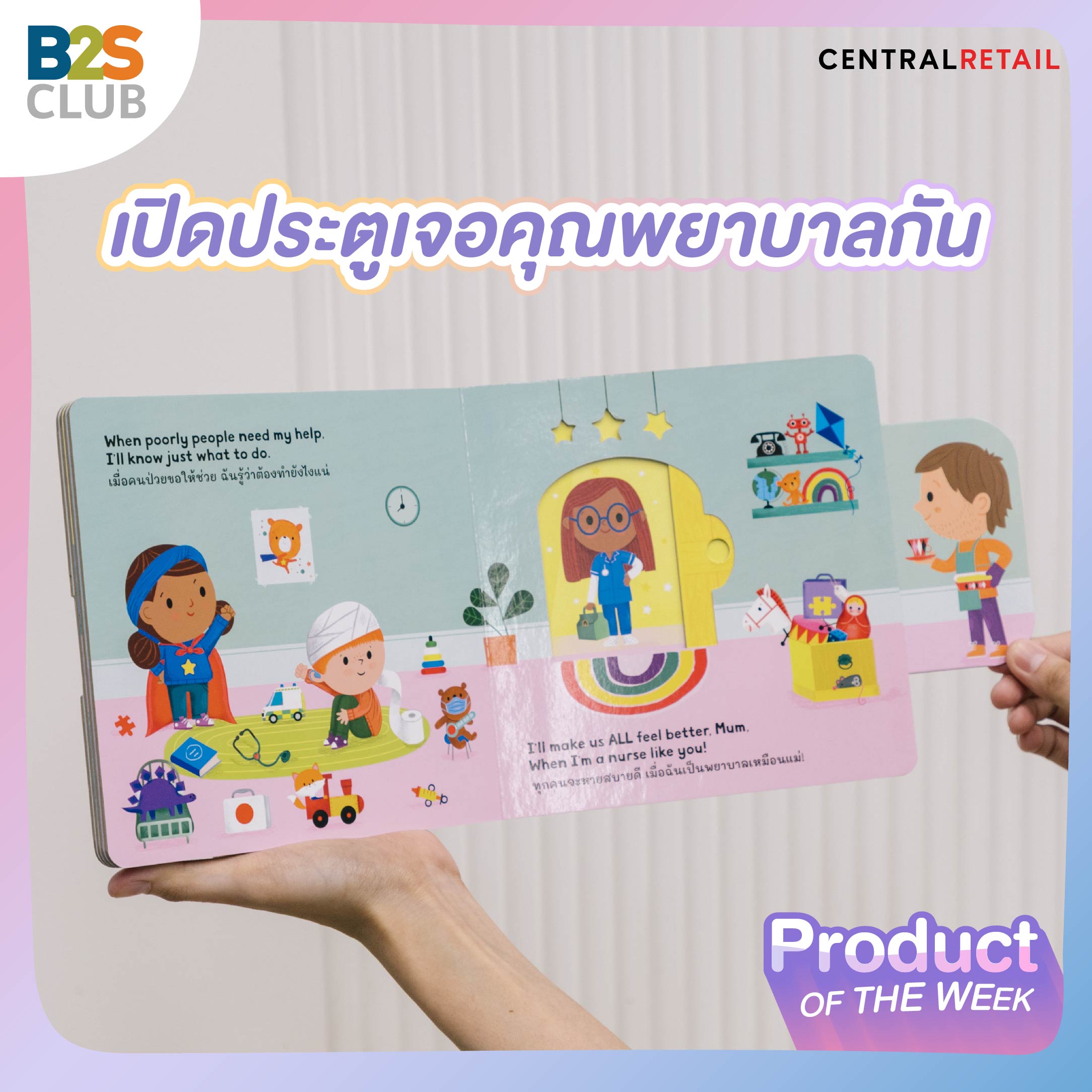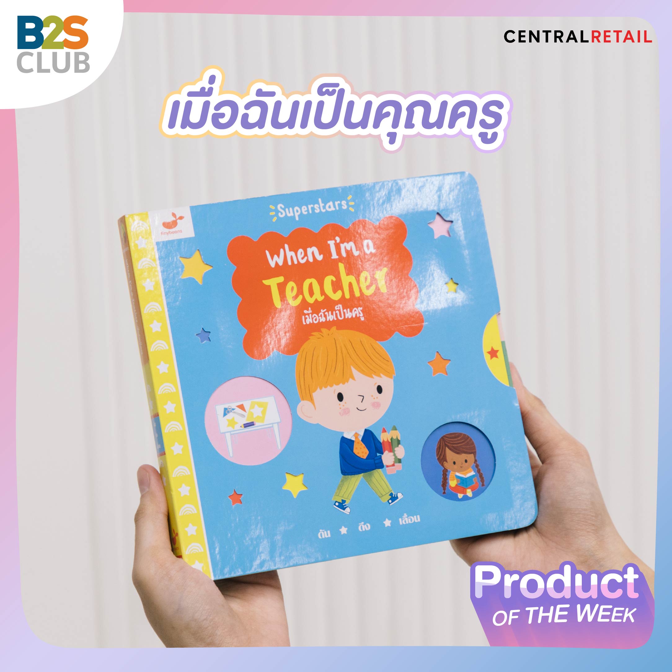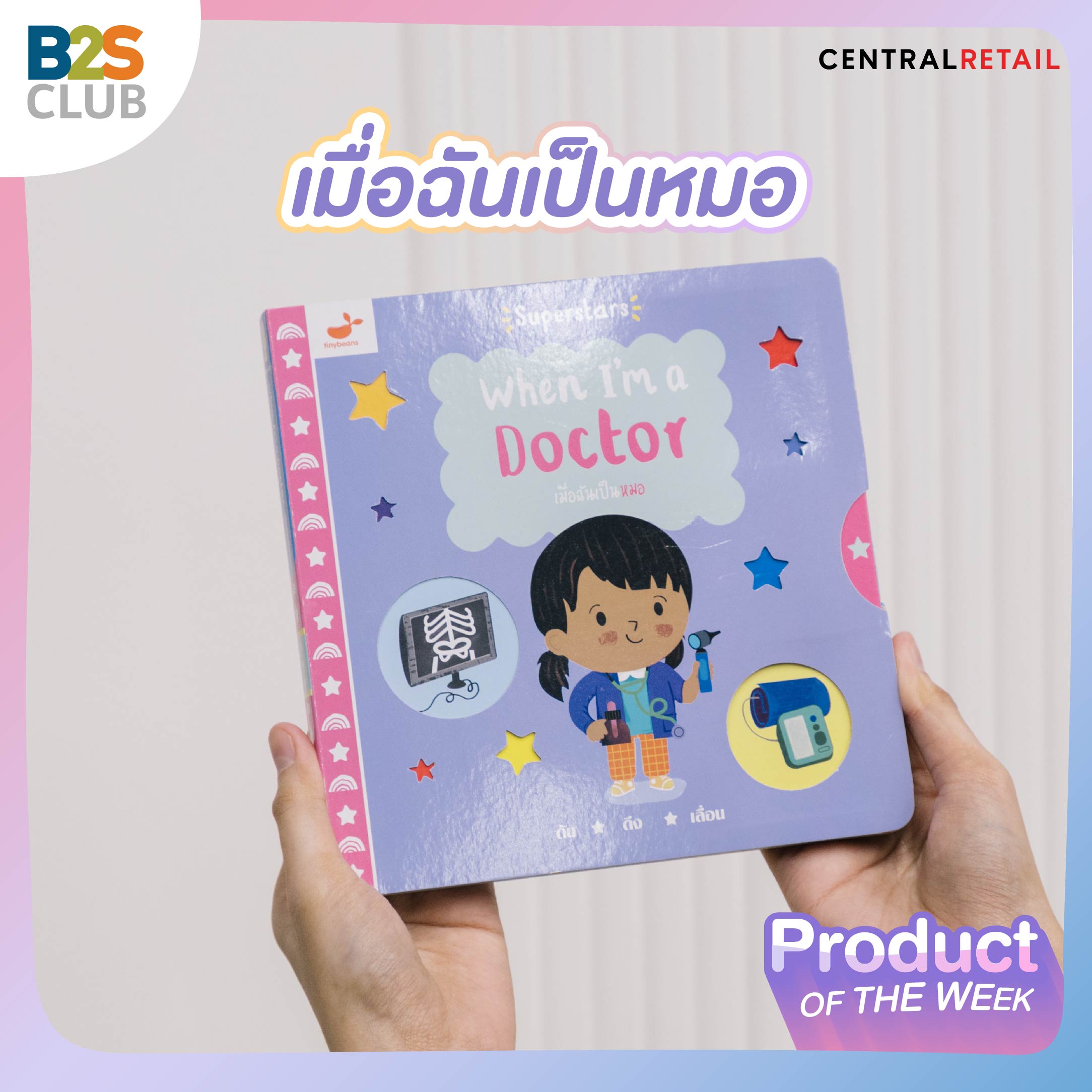 What: หนังสือบอร์ดบุ๊กแนวใหม่ ให้ความรู้เกี่ยวกับอาชีพต่างๆ ที่จะช่วยให้น้อง ๆ กล้าคิดกล้าฝัน และสนุกไปกับการอ่านแบบ "ดัน-ดึง-เลื่อน" เหมาะสำหรับเด็กวัยหัดเดิน
