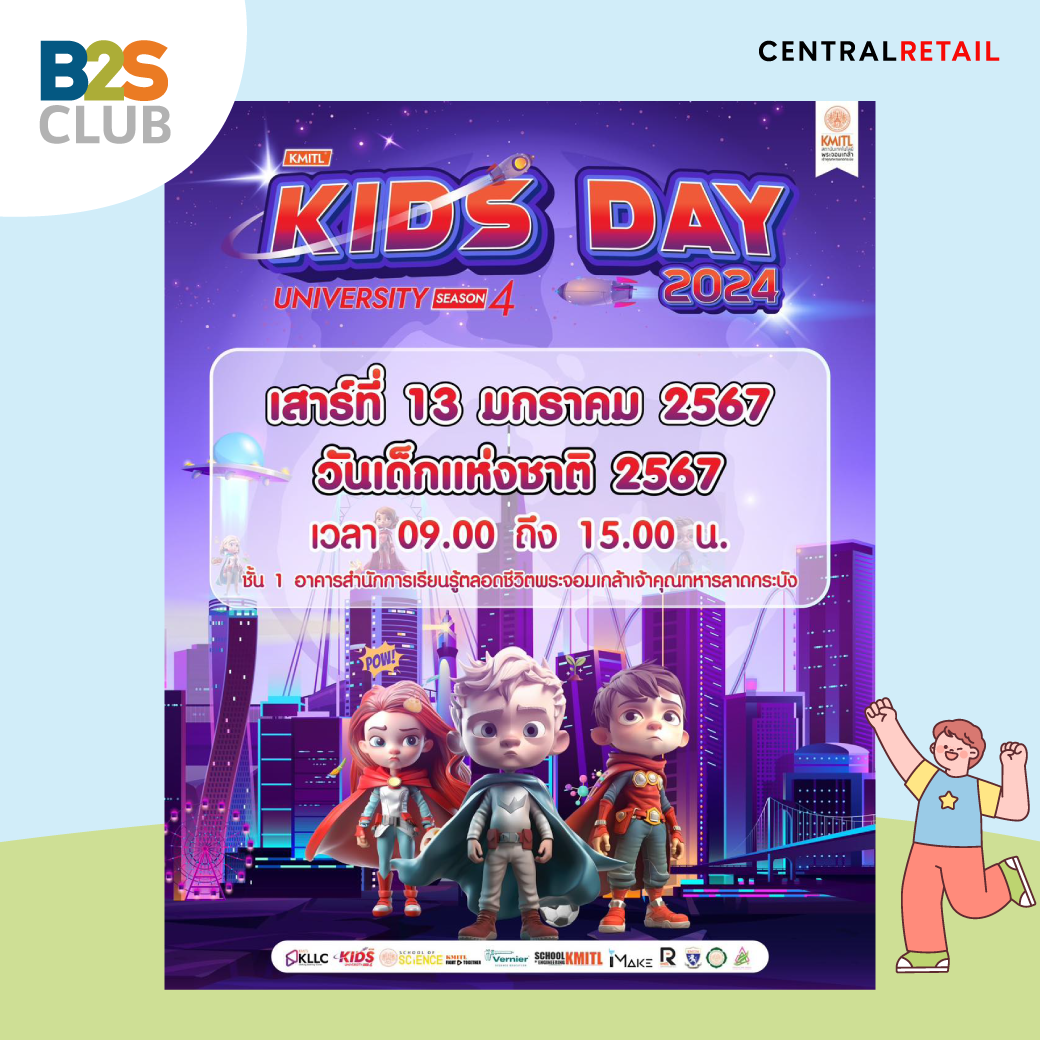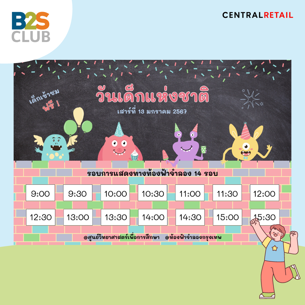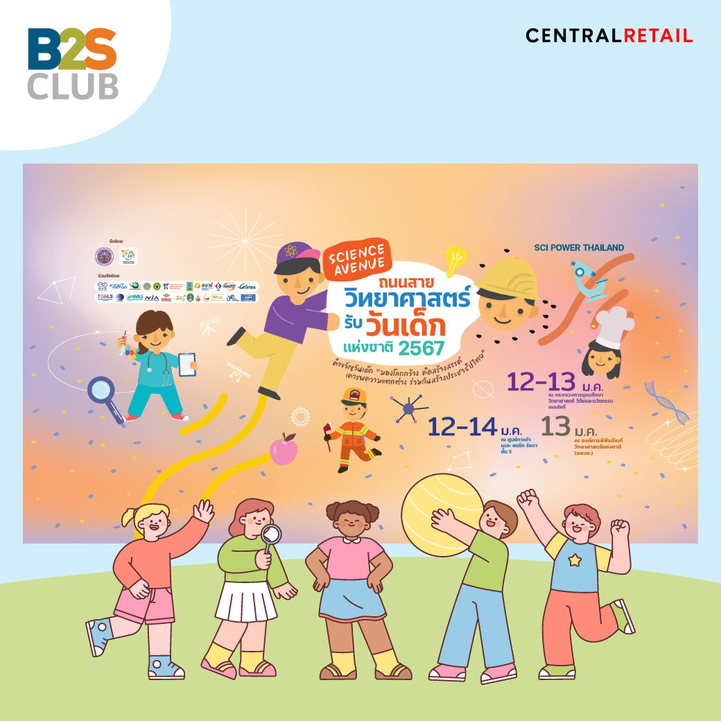 เป็นยังไงกันบ้างคะ ปีนี้ครึกครื้นไม่แพ้ปีไหนๆ เลย พ่อๆ แม่ๆ เตรียมปักหมุดพาเด็กๆ ไปด่วน B2S CLUB หวังว่าวันเด็กปีนี้ จะสร้างประสบการณ์น่าประทับใจ และเป็นแรงบันดาลใจให้เด็ก ๆ ได้ต่อยอดความฝันและผลักดันให้เติบโตเป็นผู้ใหญ่อย่าดีและมีความสุขกันทุกคนเลยนะคะ : )