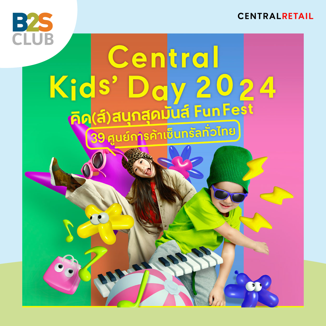 ฉลองวันเด็กแห่งชาติสุดมันส์ ที่เซ็นทรัลใกล้บ้านทั่วประเทศไทย! ในงาน “คิด(ส์)สนุกสุดมันส์ Fun Fest” ที่เปิดพื้นที่ให้เด็ก ๆ ได้เล่นสนุกกับเพลย์กราวนด์และคาแรคเตอร์สุดคิ้วท์มากมาย พร้อมสนุกช้อปกับ KIDS FUN MARKET ตลาดครอบครัวตัวจิ๋ว และชมโชว์สุดพิเศษจาก Central Pattana Kids Star Show ฟรี! สนุกกันเต็มที่ตลอดเดือนมกราคม ตั้งแต่วันที่ 1- 17 ม.ค. 67 ทั้ง 39 ศูนย์การค้าเซ็นทรัลทั่วประเทศ