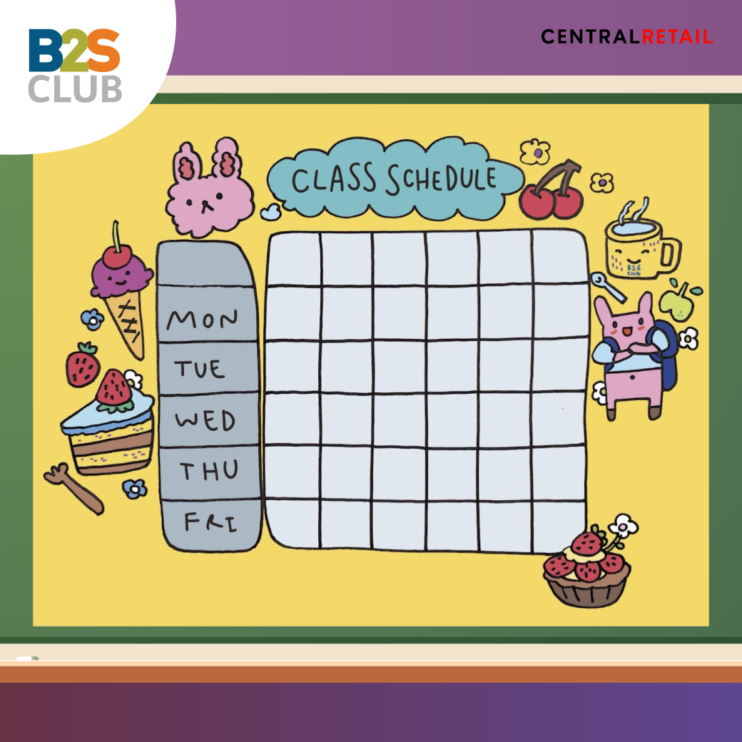 วันนี้ B2S CLUB จะมาแจกไอเทมน่ารัก ๆ ที่จะทำให้น้อง ๆ หนู ๆ อยากลุกขึ้นมาจัดตารางเรียนด้วยตัวเอง ซึ่งนั่นก็คือออ..เทมเพลตตารางเรียนงาน Hand Made สุดคิ้วท์ วาดเอง ดีไซน์เองกับมือ ปริ้นท์ไปติดโต๊ะทำการบ้าน เสริมสร้างกำลังใจได้เลยน้า
