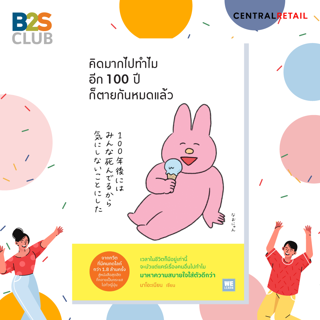 “คิดมากไปทำไม อีก 100 ปี ก็ตายกันหมดแล้ว” เล่มนี้ชื่อเค้าบอกกันตรง ๆ ไปเลยว่าอีกร้อยปีเราก็ตายจากกันแล้ว อย่ามัวแต่ไปสนใจชีวิตคนอื่น หันมาหาความสบายใจใส่ตัวดีกว่า กับข้อคิดเล็ก ๆ ที่จะช่วยให้เลิกคิดฟุ้งซ่าน แล้วเริ่มทวงคืนความสบายใจให้ตัวเองจากหนังสือสุดฮิตที่กลายเป็นกระแสไปทั่วญี่ปุ่น