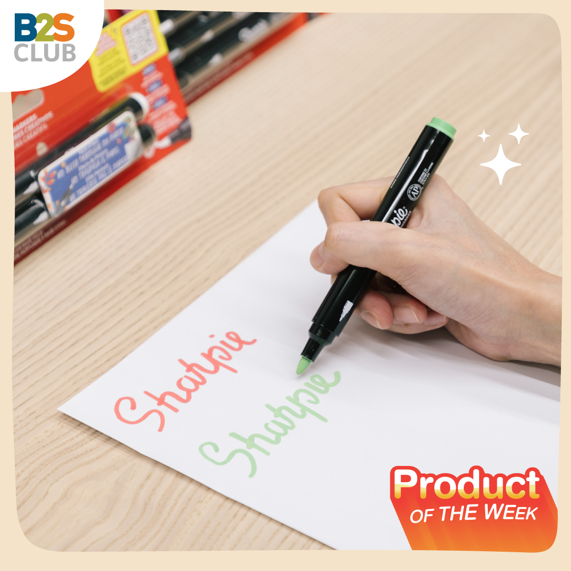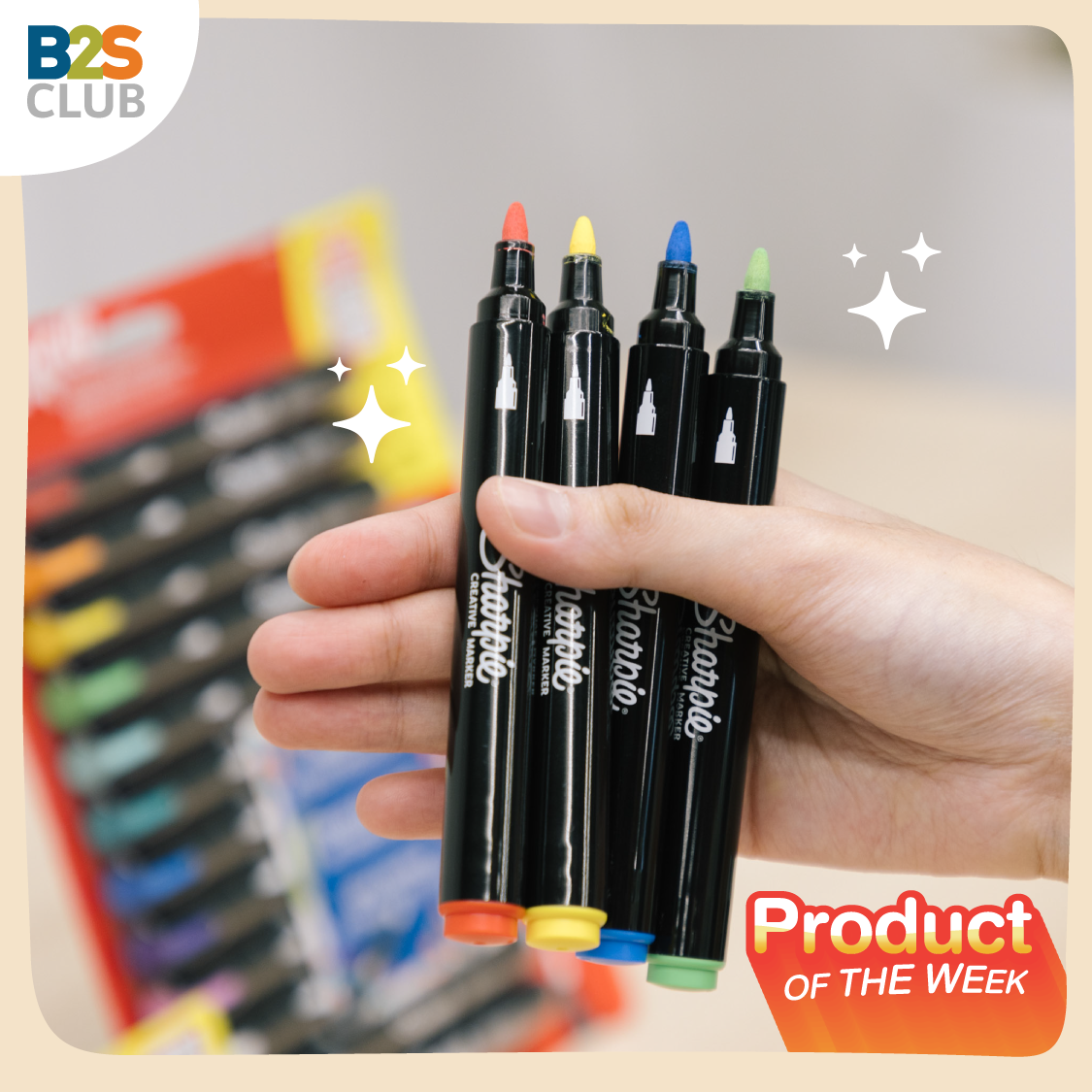 What: Sharpie Creative Marker มาร์คเกอร์ที่เขียนได้ทุกพื้นผิว และไม่ซึมทะลุกระดาษ มีทั้งหมด 12 เฉดสี แถมเลือกหัวปากกาได้ 2 แบบ ทั้งหัว Bullet และหัว Brush tip เลือกซื้อเป็นเจ้าของได้แล้วที่ B2S ทุกสาขา