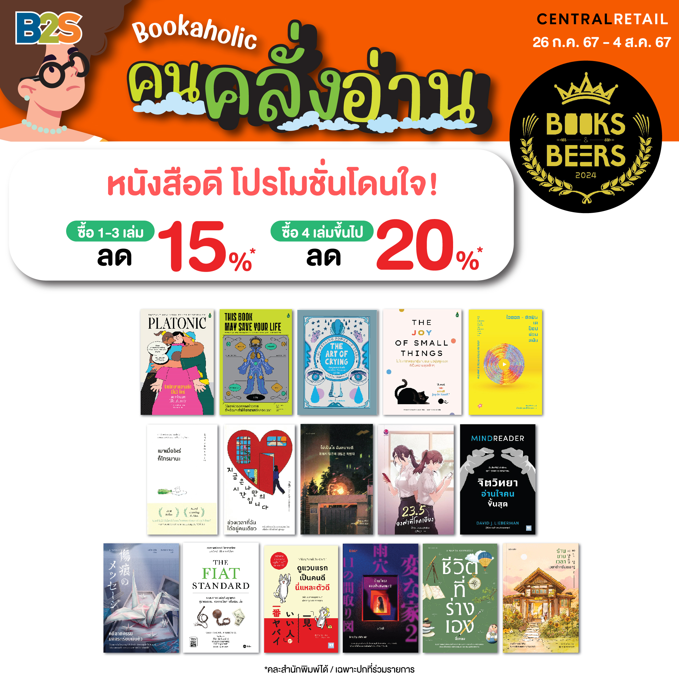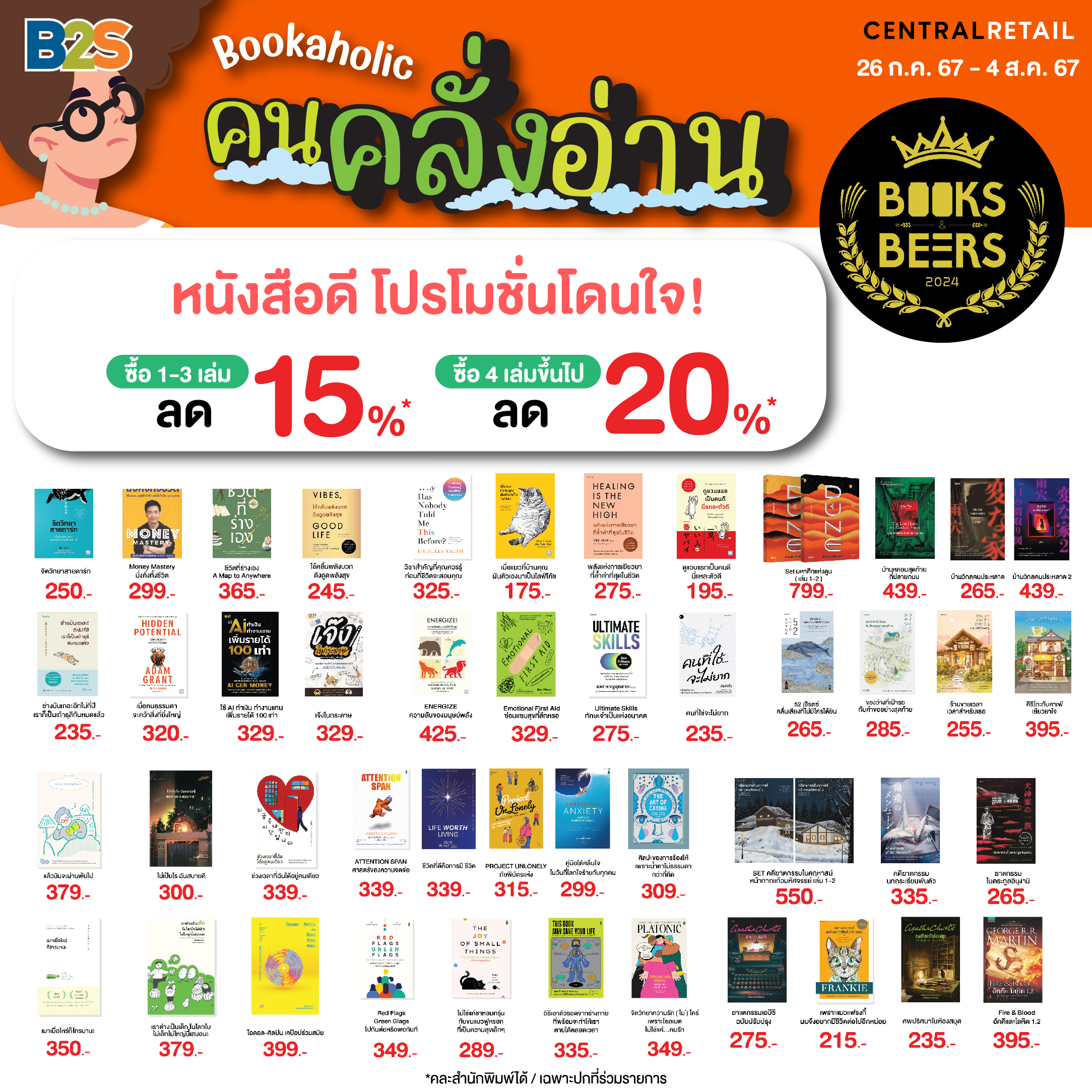 • โปรโมชั่นดีโดนใจ ซื้อหนังสือในบูธบีทูเอส ในงาน Book&Beer 2024 ตั้งแต่วันที่ 26 ก.ค. – 4 ส.ค. 67 โปรโมชั่นซื้อ 1-3 เล่ม ลด 15% ซื้อ 4 เล่มขึ้นไป ลด 20 %*