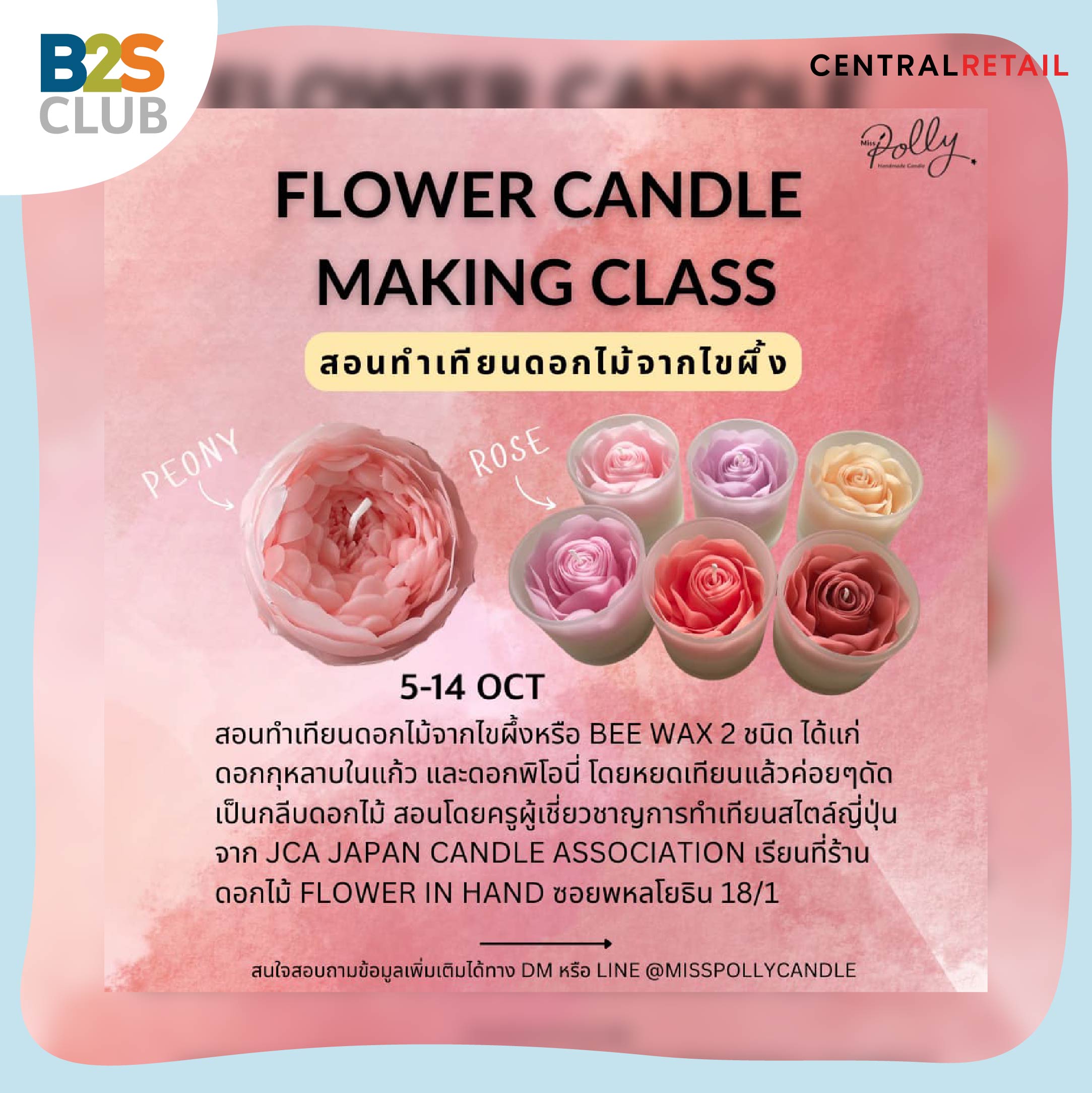 Workshop นี้อินเทรนด์สุดๆ เหมาะสำหรับเพื่อนๆ ที่หลงใหลในสเน่ห์ของกลิ่นหอมแบบต่างๆ โดยจะพามาทำเทียนจาก Beeswax เป็นรูปดอกไม้ ซึ้งเป็นการทำเทียนสไตล์ญี่ปุ่นจาก JC Japan Candle Action เพื่อนๆ จะได้เรียนรู้วิธีการทำเทียนจากขี้ผึ้งธรรมชาติ ซึ่งเป็นวัสดุที่มีคุณสมบัติเป็นมิตรต่อสิ่งแวดล้อม ทุกคนจะได้ทำเทียนทั้งหมด 2 ชิ้น ได้แก่ เทียนกุหลาบในแก้ว (Bee & Soy Wax) และเทียนดอกพิโอนี่ (Bee Wax) โดยการหยดเทียนแล้วค่อยๆ ดัดเป็นกลีบดอกไม้ สอนโดยครูผู้เชี่ยวชาญด้วยนะ