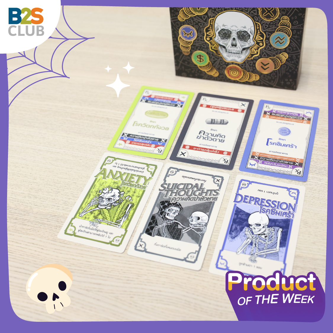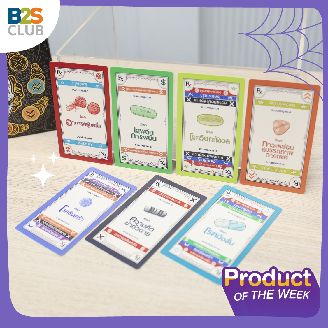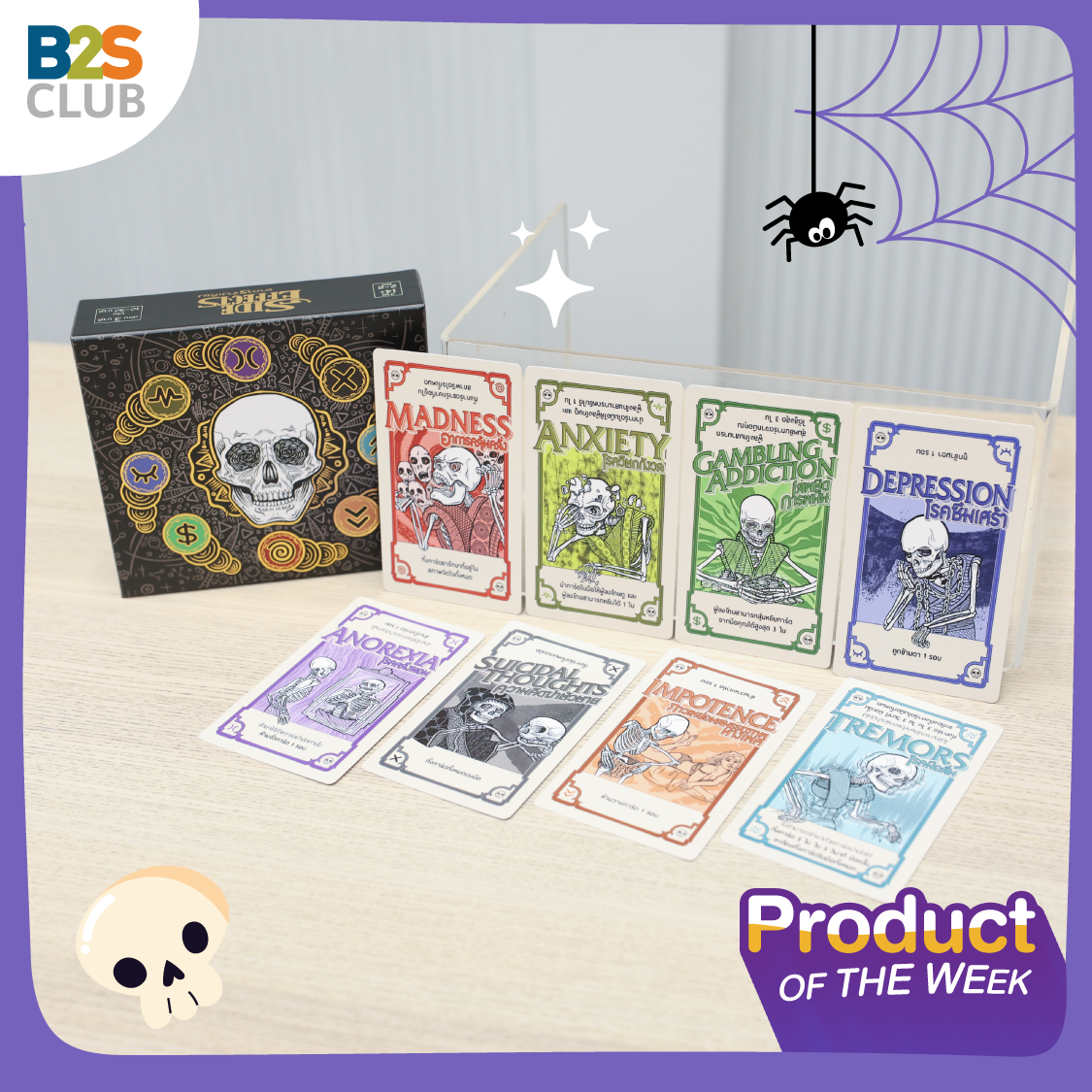 Why: เกมน่าเล่นต้อนรับฮาโลวีนสุดๆ ด้วยธีมของเกมที่เก๋ แปลก ไม่เหมือนใคร ว่าด้วยเรื่องของการนำเอาอาการทางจิตเวชต่างๆ มาสร้างเป็นเควสให้เราต้องรักษาโรคเหล่านั้นให้หาย ซึ่งระหว่างการรักษาก็ไม่ง่าย เพราะเพื่อนๆ จะคอยกลั่นแกล้งโยนผลข้างเคียงมาให้เราเรื่อยๆ บอกเลยว่า เป็นเกมแบบใหม่ที่ไม่เคยมีมาก่อน ใครอยากทดลองเนื้อเรื่องใหม่ๆ เกมรูปแบบใหม่ๆ ต้องจัดตัวนี้เลยนะ ที่สำคัญ การ์ดแต่ละใบทำดีไซน์มาดีมากกก นำหัวกะโหลกสุดหลอนมาใช้ เตรียมเปิดตี้ ปิดไฟ เล่นกันวันฮาโลวีนเลย!