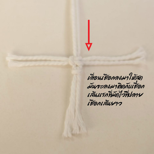 จากนั้นแบ่งเชือก ออกเป็น 4 กลุ่ม เท่าๆ กัน