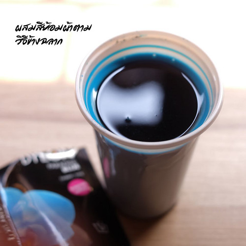 เสร็จแล้วผสมสีย้อมผ้า โดยดูปริมาณ และวิธีการผสมข้างฉลาก