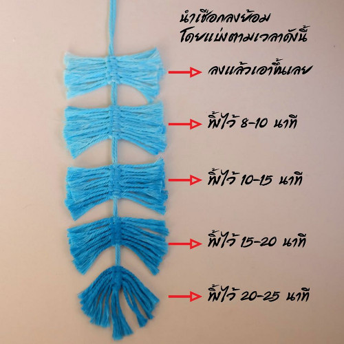 นำเชือกลงย้อมในแก้วสี โดยแบ่งตามเวลาดังในภาพเลย