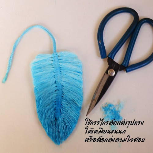 แล้วก็ใช้กรรไกรตัดแต่งรูปทรงให้เหมือนขนนก ทำได้ตามใจชอบเลย