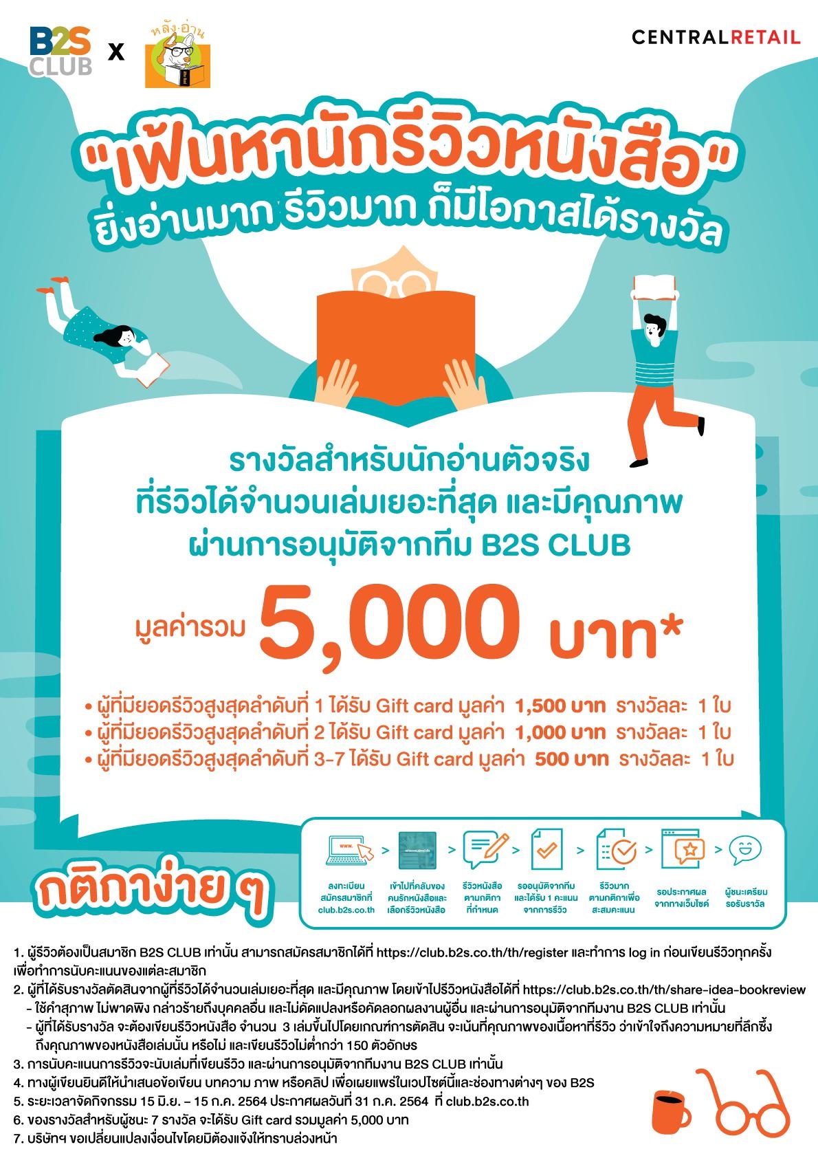 กิจกรรม เฟ้นหานักรีวิว ยิ่งรีวิวมาก ยิ่งมีโอกาสมาก รับรางวัลอ่านหนังสือฟรีรวมมูลค่า 5,000 บาท