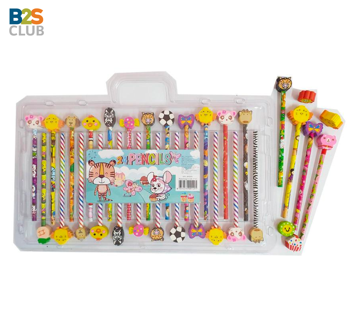 อยากกระตุ้นให้ลูกน้อยสนุกกับการเขียน ต้องมีเครื่องเขียนน่ารักๆ ที่พร้อมเปลี่ยนเวลาเรียน เป็นเวลาเล่นสนุกได้ทันที กับดินสอก้นยางลบใช้สะดวกมากถึง 24 แท่ง มีหลายสี หลายแบบให้เลือกสลับได้ตามใจ  สั่งซื้ออนไลน์คลิก