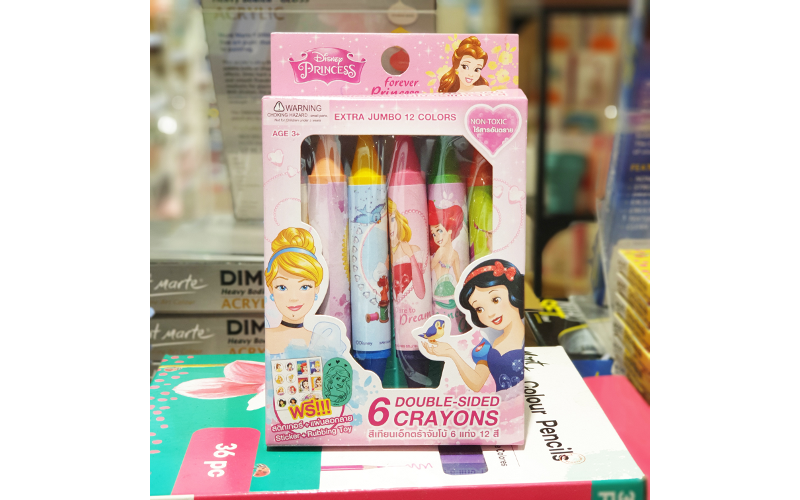 “สีเทียนเจ้าหญิง extra jumbo” มีทั้งหมด 6 แท่ง 12 สี ขนาดใหญ่พิเศษให้ลูกน้อยกำถนัดมือ ใช้เขียนได้ทั้งสองด้าน เป็นสีเทียนไร้สารอันตราย เหมาะกับเด็กเล็กตั้งแต่วันขวบปี ให้เพลิดเพลินกับการระบายสี พร้อมสติ๊กเกอร์ลอกลายเจ้าหญิงดิสนีย์ขวัญใจสาวน้อย