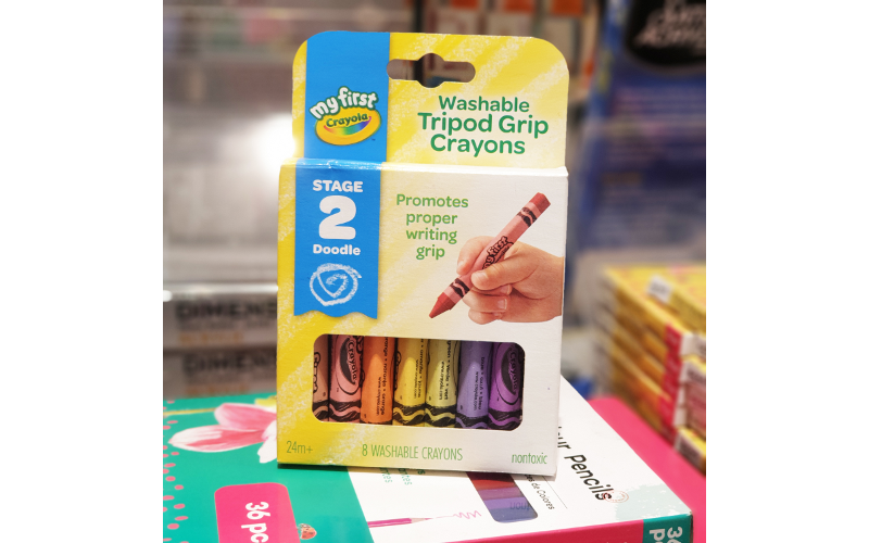 หรือ “สีเทียนไซส์ใหญ่จาก Crayola”  ราคา 250  บาท ด้ามจับเป็นแท่งสามเหลี่ยมช่วยให้จับถนัดมือ มาเป็นเซต 8ปีในกล่องกะทัดรัด เหมาะกับจิตรกรน้อยมือใหม่ สั่งซื้อ คลิก