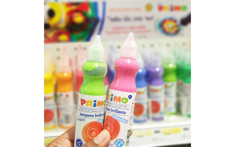 “สีแบบหยด” จากแบรนด์ primo จากอิตาลีที่คิดค้นการใช้สีให้เหมาะกับพัฒนาการของเด็กเล็ก เพียงแค่บีบสีออกจากขวดก็ใช้วาดภาพได้แบบไม่ต้องง้อพู่กัน เพียงแค่ บีบ จุด หรือวาด ก็พร้อมให้เด็กๆสร้างสรรค์งานของตัวเองอย่างเต็มที่แล้ว ที่สำคัญเป็นสีของเด็กโดยเฉพาะจึงไม่ต้องกังวลเรื่องสารอันตรายแน่นอน