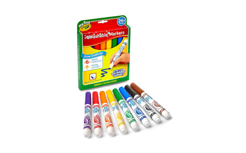 “ปากกาเมจิก” แท่งใหญ่จากแบรนด์ Crayola  ราคา 250 บาท สีเข้มสวย แท่งใหญ่จับถนัดมือ หัวปากกากลมมน ใช้ได้อย่างปลอดภัยคุณแม่ลองหาพื้นโล่งๆ หน้าบ้าน หรือผนังกำแพงบ้านให้ลูกได้ลองขีดๆเขียนๆแบบไม่ต้องกลัวเลอะเทอะ เพราะสามารถล้างออกได้หมดจดแม้จะเป็นสีเมจิก   สั่งซื้อสินค้า คลิก