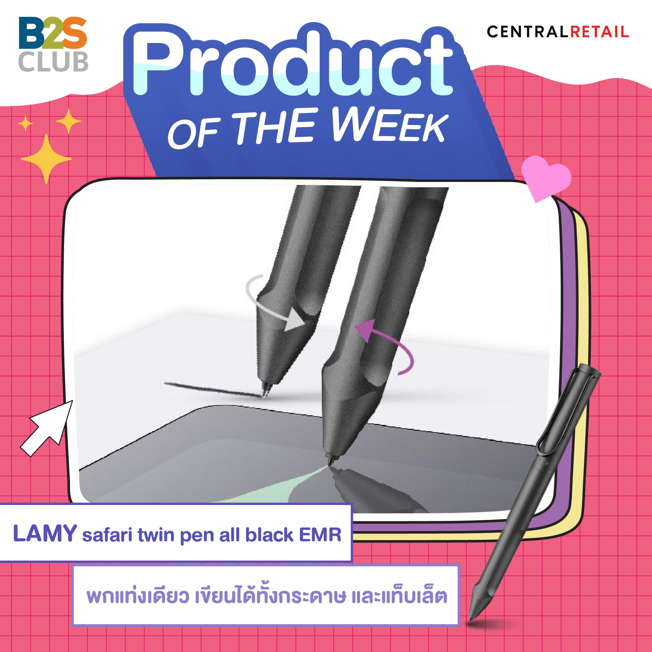 Why : LAMY safari twin pen all black EMR นี้ได้รับการพัฒนาเพื่อการใช้งานแบบยืดหยุ่นเหมาะกับไลฟสไตล์ของคนรุ่นใหม่ในยุคปัจจุบัน ปากกาแบบ 2-in-1 นี้เป็นการออกแบบของปากกา 2 ระบบในด้ามเดียว คือ หัว EMR- digital pen ใช้เขียนบนสื่อดิจิทัล (แท็บเล็ต สมาร์ทโฟน โน้ตบุ๊ก) และ Ballpoint pen หัวปากกาลูกลื่นใช้เขียนบนสื่ออนาล็อก (กระดาษ) และยังมีดีไซน์ สวย พกพาสะดวกด้วยเจ้าคลิปที่ป้องกันการตกหล่นอีกด้วย ส่วนเรื่องการใช้งานนั้นสามารถใช้กับอุปกรณ์ได้สะดวก และเขียนลื่น