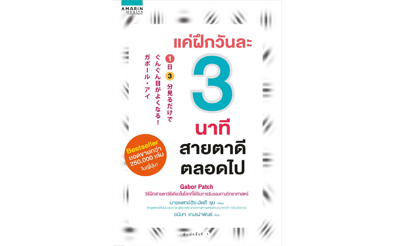 แค่ฝึกวันละ 3 นาทีสายตาดีตลอดไป ตัวช่วยเพื่อ "ฟื้นฟูสุขภาพดวงตา" ด้วยตนเอง จากจักษุแพทย์ชื่อดังชาวญี่ปุ่นที่ได้รับการยอมรับระดับโลก! ในเล่มผู้อ่านจะได้เพลิดเพลินกับแบบทดสอบสายตาด้วยวิธี Gabor Patches เขียนโดย Dr. Hiramatsu จักษุุแพทย์ชื่อดังชาวญี่ปุ่น ที่ช่วยแก้ปัญหาเรื่องการมองเห็น เพียงฝึกวันละ 3 นาทีต่อเนื่องกัน 3-4 สัปดาห์ ปัญหาสายตาต่างๆ จะดีขึ้น ไม่ว่าจะเป็น สายตาสั้น สายตายาว หรือสายตาเอียง และเป็นวิธีที่ได้รับการพิสูจน์ทางวิทยาศาสตร์จาก University of California แล้วว่ามีประสิทธิภาพ คลิกสั่งซื้อ https://bit.ly/3zLZWJa