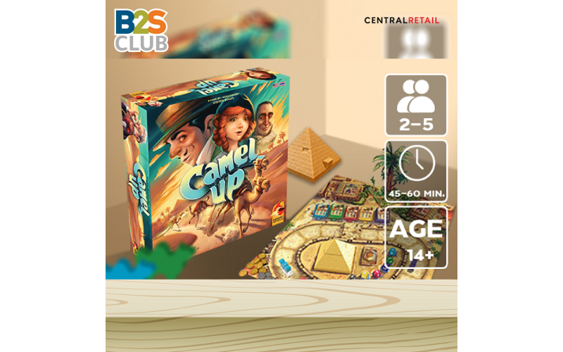 CAMEL UP เกมนี้ผู้เล่นและเพื่อนจะต้องอยู่ในการวิ่งแข่งอูฐสุดอลหม่านครั้งใหม่ที่กำลังจะเริ่มขึ้น อูฐตัวไหนจะเข้าเส้นชัยกันก่อนนะ! มาร่วมกันทายว่าอูฐสีใดจะวิ่งเร็วกว่ากัน โดยให้ผู้เล่นทอยลูกเต๋าของอูฐแต่ละสีเพื่อแข่งวิ่งอูฐ และเราสามารถแกล้งอูฐตัวอื่นให้วิ่งถอยหลัง หรือเร่งให้อูฐที่เราเชียร์วิ่งเร็วขึ้นได้โดยวางไทล์กำดักเอาไว้! ผู้เล่นคนไหนได้เหรียญพนันเยอะที่สุดจะเป็นผู้ชนะไป! การันตีความสนุกโดยกวาดรางวัลเกมปาร์ตี้อันดับ 1 มาแล้วในงานบอร์ดเกมระดับโลก! ด้วยสีสัน และความน่ารักของอุปกรณ์ทำให้เล่นได้ความสนุก และฝึกการวางแผนไปด้วย