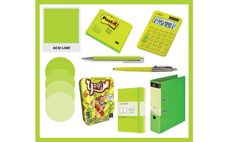 สี Acid Lime หรือสีเขียวสะท้อนแสง อีกหนึ่งสีฮิตแห่งปีที่ดีไซน์เนอร์เลือกใช้ในวงการแฟชั่นและการตกแต่งบ้าน เป็น ตัวแทนของความแปลกใหม่ ทำให้รู้สึกถึงการรวมความคิดสร้างสรรค์ทั้งเก่าและใหม่ ความจริงและสิ่งสังเคราะห์ ความย้อนแย้งและเติมเต็มจิตใจในเวลาเดียวกัน