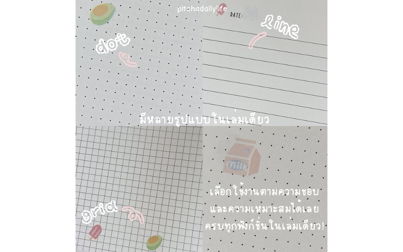 แบบสุดท้าย เป็นการใช้แพลนเนอร์ที่มีกระดาษหลายแบบทั้งแลลจุด แบบเส้น แบบตาราง ทำให้จดได้หลากหลายรูปแบบ ครีเอทการจดได้ตามจินตนาการ