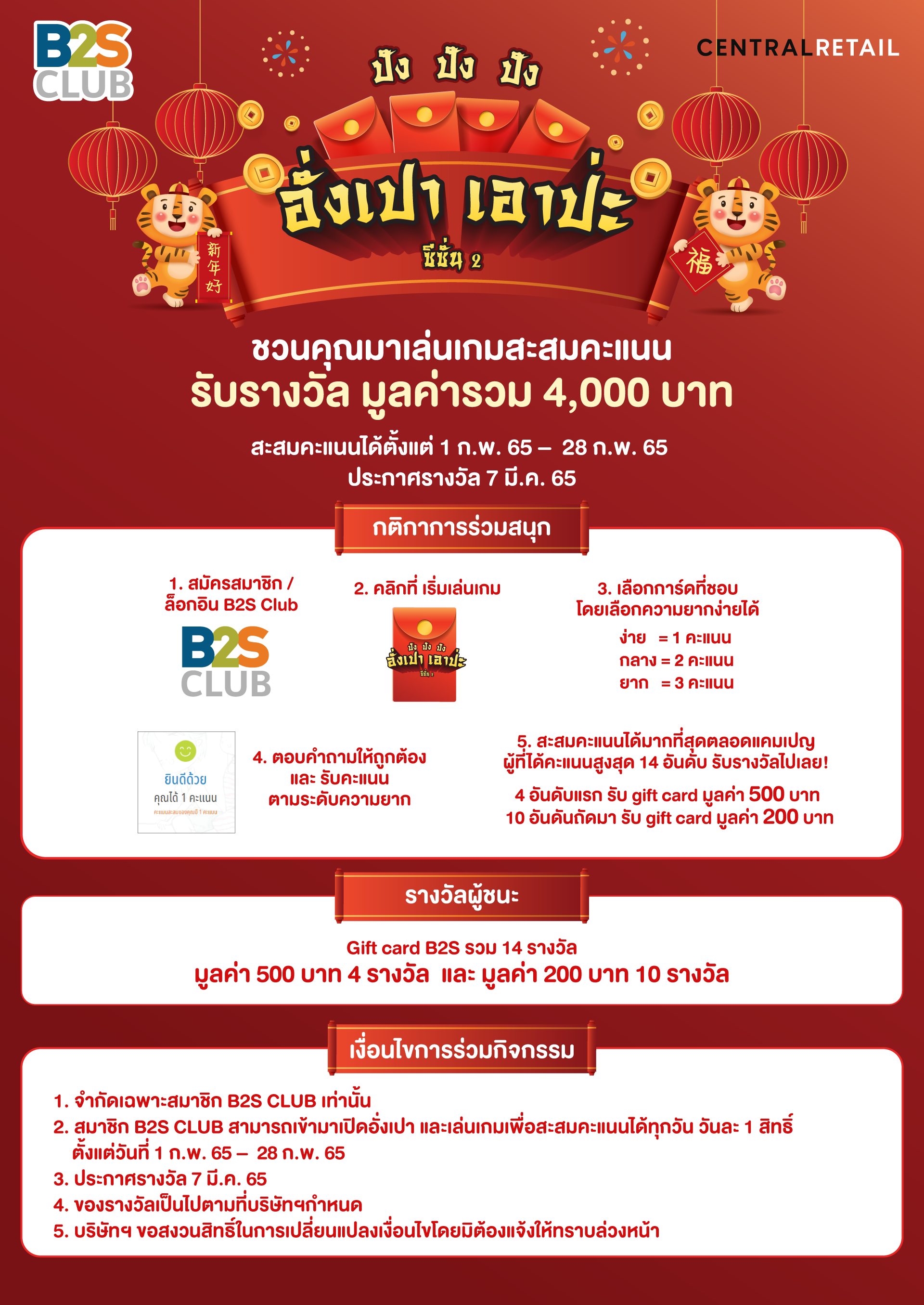 สะสมคะแนนได้ตั้งแต่ 1 ก.พ. 65 –  28 ก.พ. 65