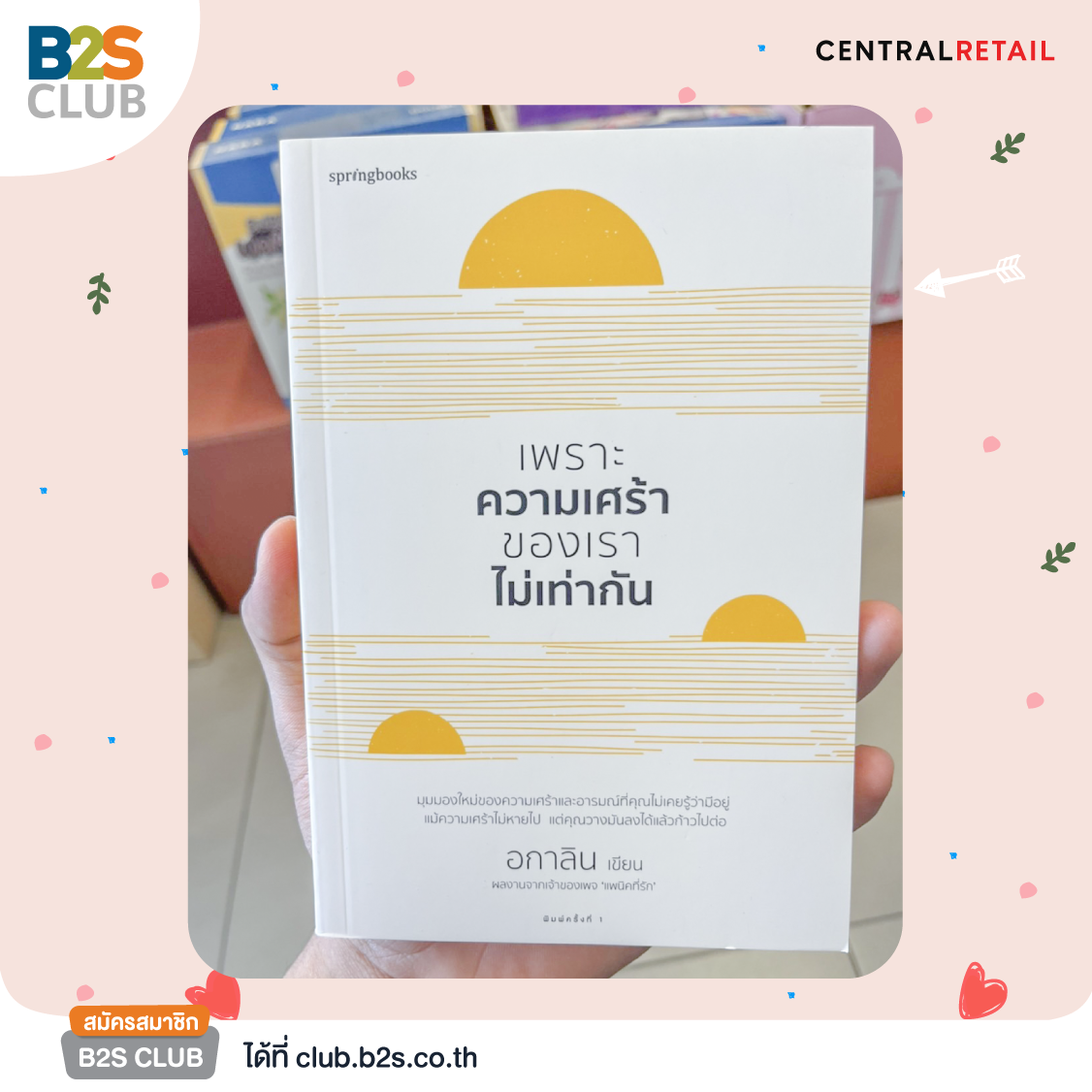 “เพราะความเศร้าของเราไม่เท่ากัน” ความเศร้าที่ไม่เคยจางหายไป แต่ทำอย่างไรให้อยู่กับความเศร้าแล้วก้าวต่อไปได้ หนังสือที่ถ่ายทอดความเข้าเกี่ยวกับโรคทางใจ และแบ่งปันวิธีการปฏิบัติตัวเพื่อรักษาสุขภาพจิตให้ดี ‘อกาลิน’ กวีคนดังที่กำลังปลอบโยนเราผ่านตัวอักษร และนำเสนอมุมมองทางอารมณ์ว่าแม้จะรู้สึกโดดเดี่ยวในความเศร้าแต่เราไม่ได้อยู่คนเดียว วันนี้ยังไม่ต้องเลิกเศร้าก็ได้แต่ก้าวต่อไปให้ได้นะ