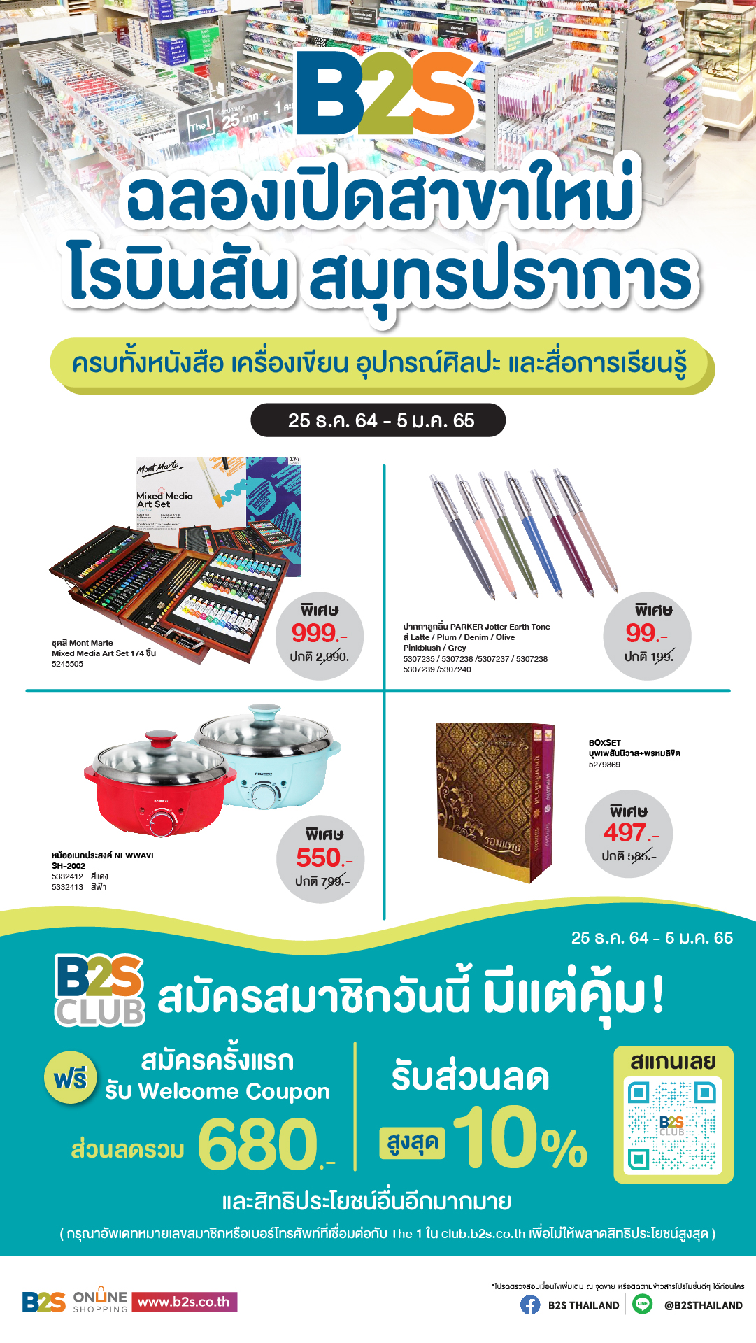 โปรโมชั่นพิเศษ ฉลองสาขาใหม่ B2S โรบินสัน สมุทรปราการ ชั้น 2