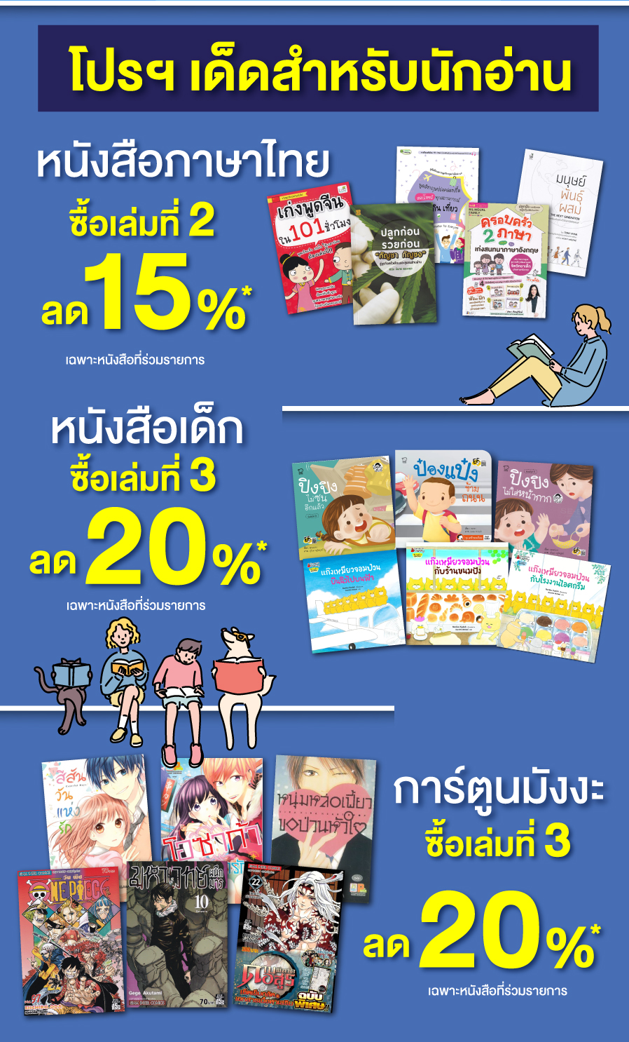 โปรฯลับ เฉพาะคุณ! รับส่วนลดเพิ่ม 120 บาท เมื่อช้อปหนังสือภาษาไทยครบ 800 บาท