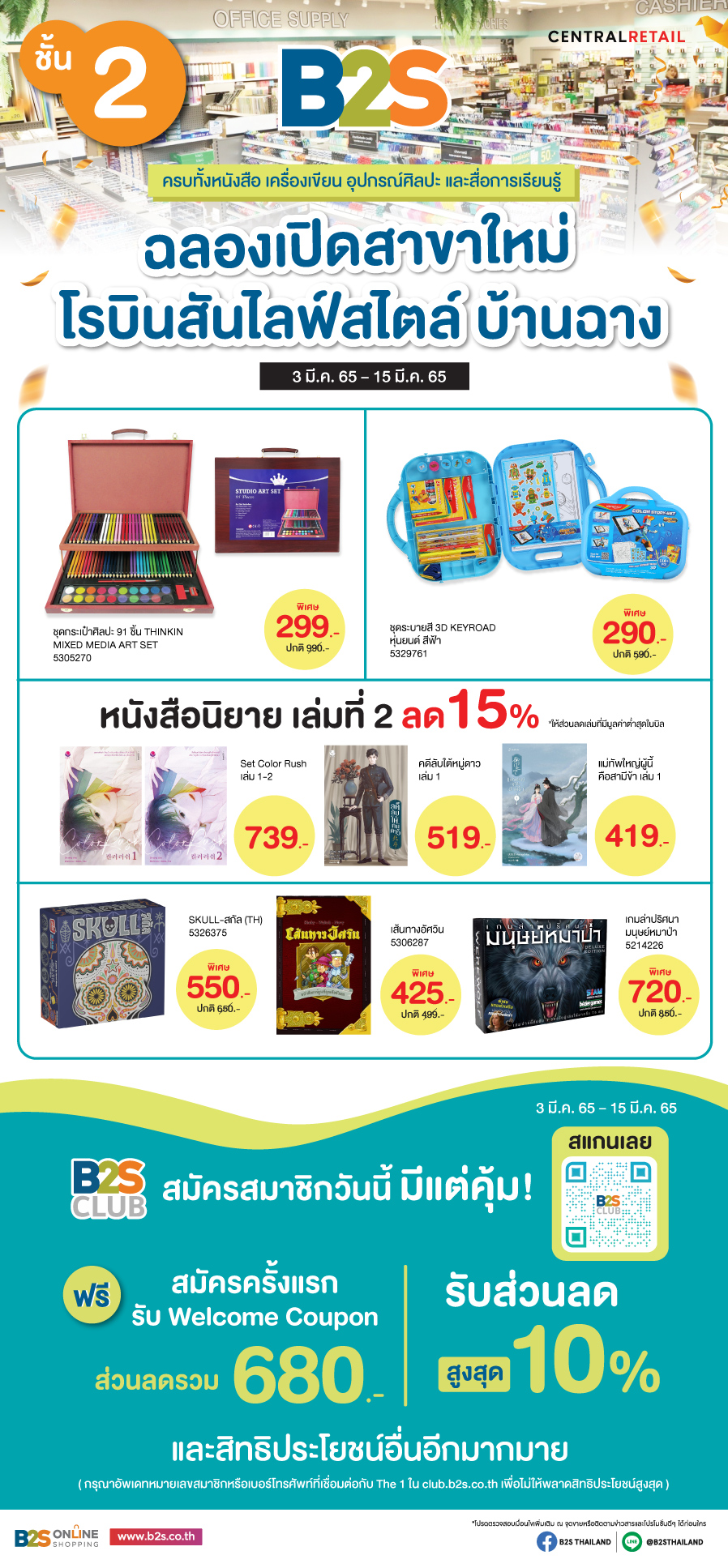 ฉลองเปิดสาขาใหม่! B2S โรบินสันไลฟ์สไตล์ บ้านฉาง ชั้น 2