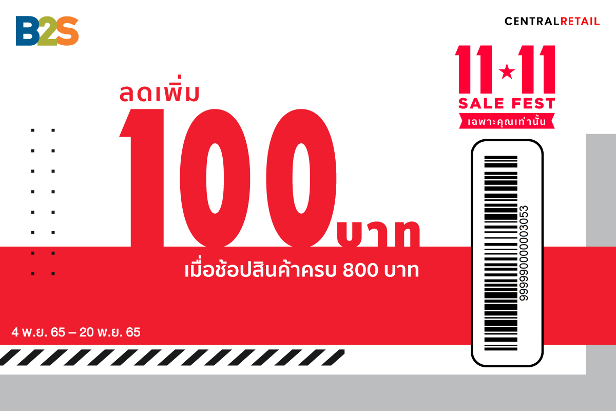 • รับส่วนลดเพิ่ม 100 บาท เมื่อซื้อสินค้าครบ 800 บาท