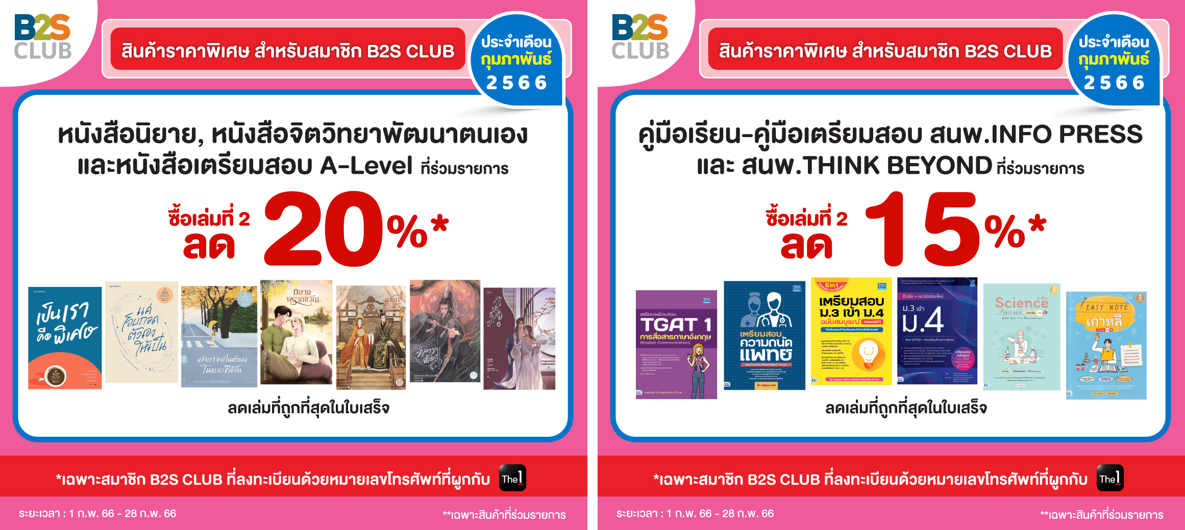 โปรโมชั่นเฉพาะสมาชิก B2S CLUB ที่สมัครสมาชิกด้วยหมายเลข The 1 เท่านั้น