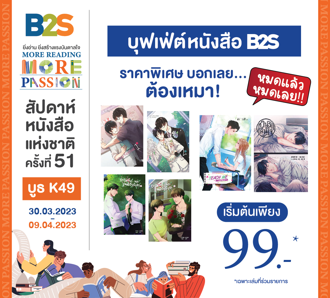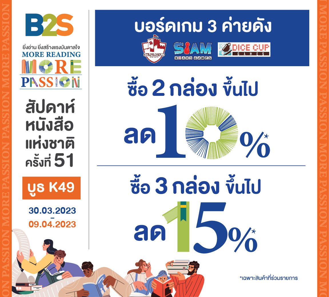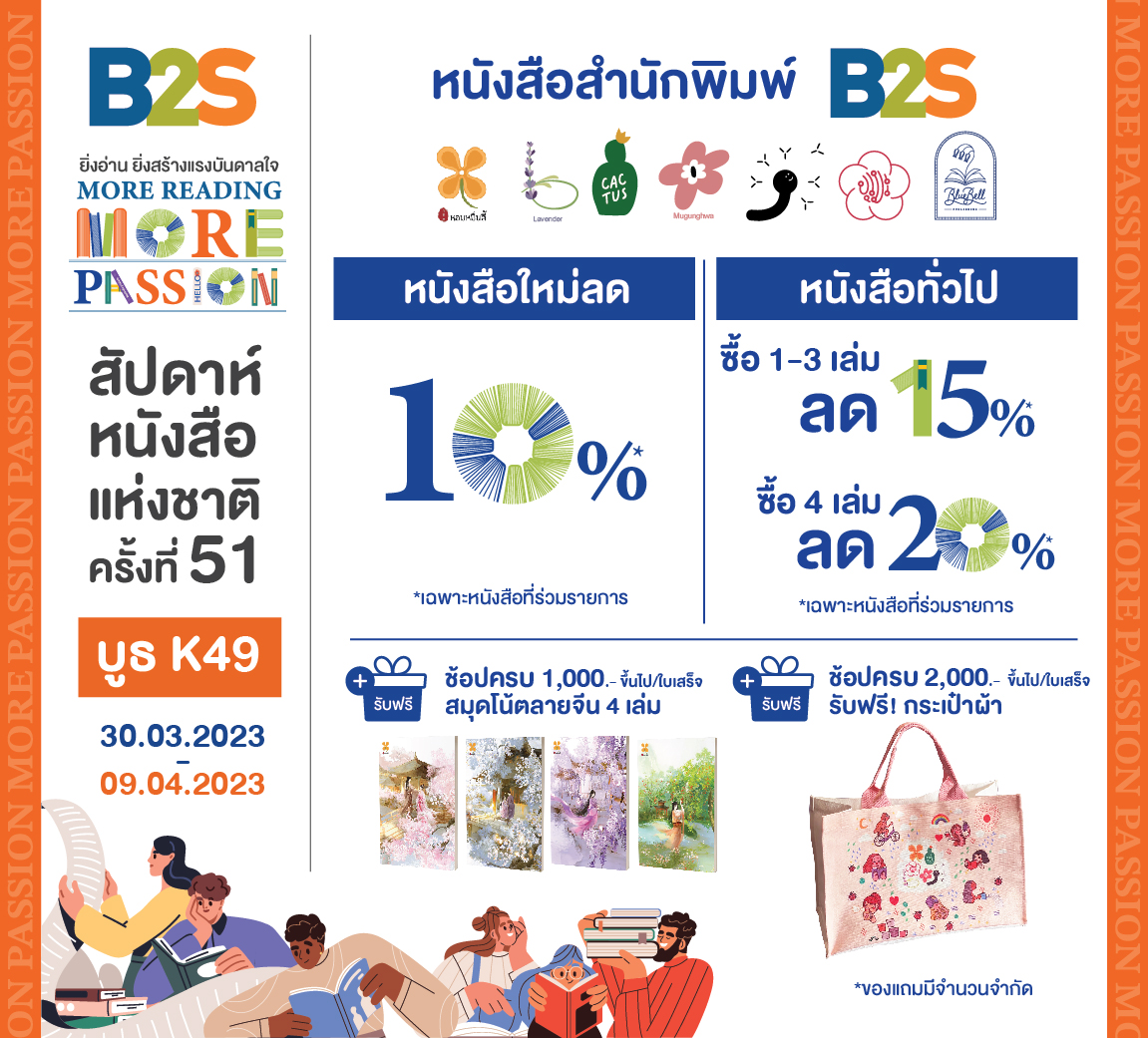 รวมโปรโมชั่นพิเศษจาก B2S สำหรับงานสัปดาห์หนังสือแห่งชาติ ครั้งที่ 51 ณ ศูนย์ประชุมแห่งชาติสิริกิติ์ ชั้น LG บูธ K49 ตั้งแต่วันที่ 30 มีนาคม - 9 เมษายน 2566 ยกทัพมาทั้งหนังสือ นิยายวาย บอร์ดเกม ลด แลก แจก แถมขนาดไหน มาดูกัน!