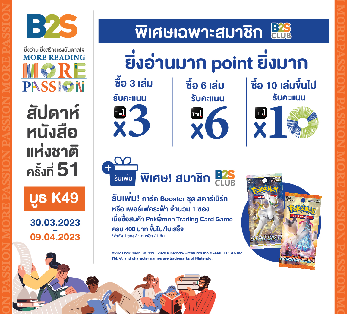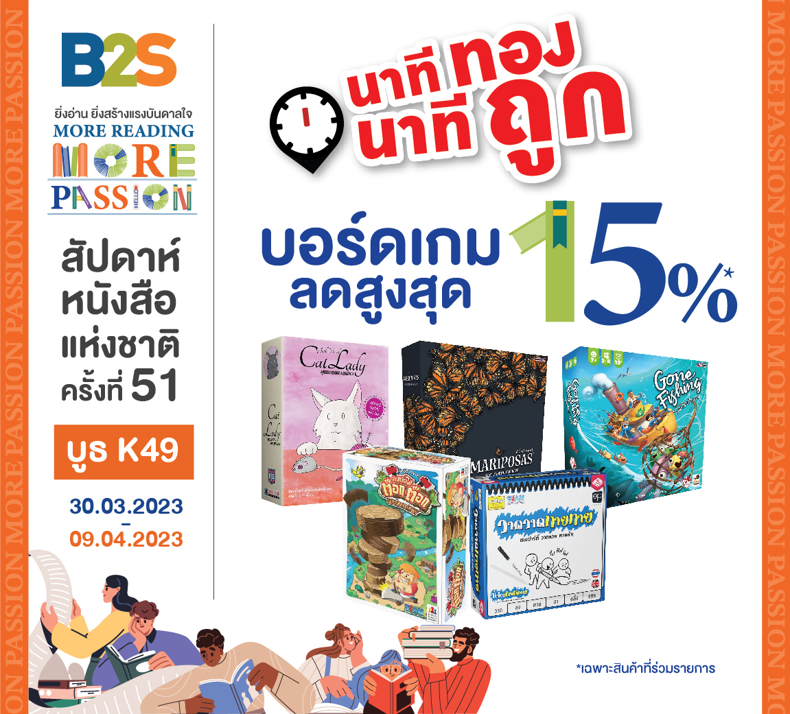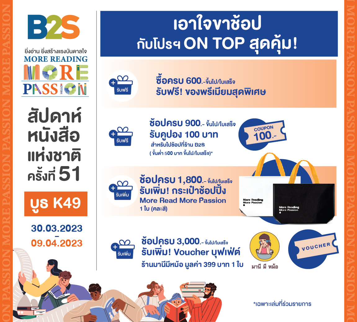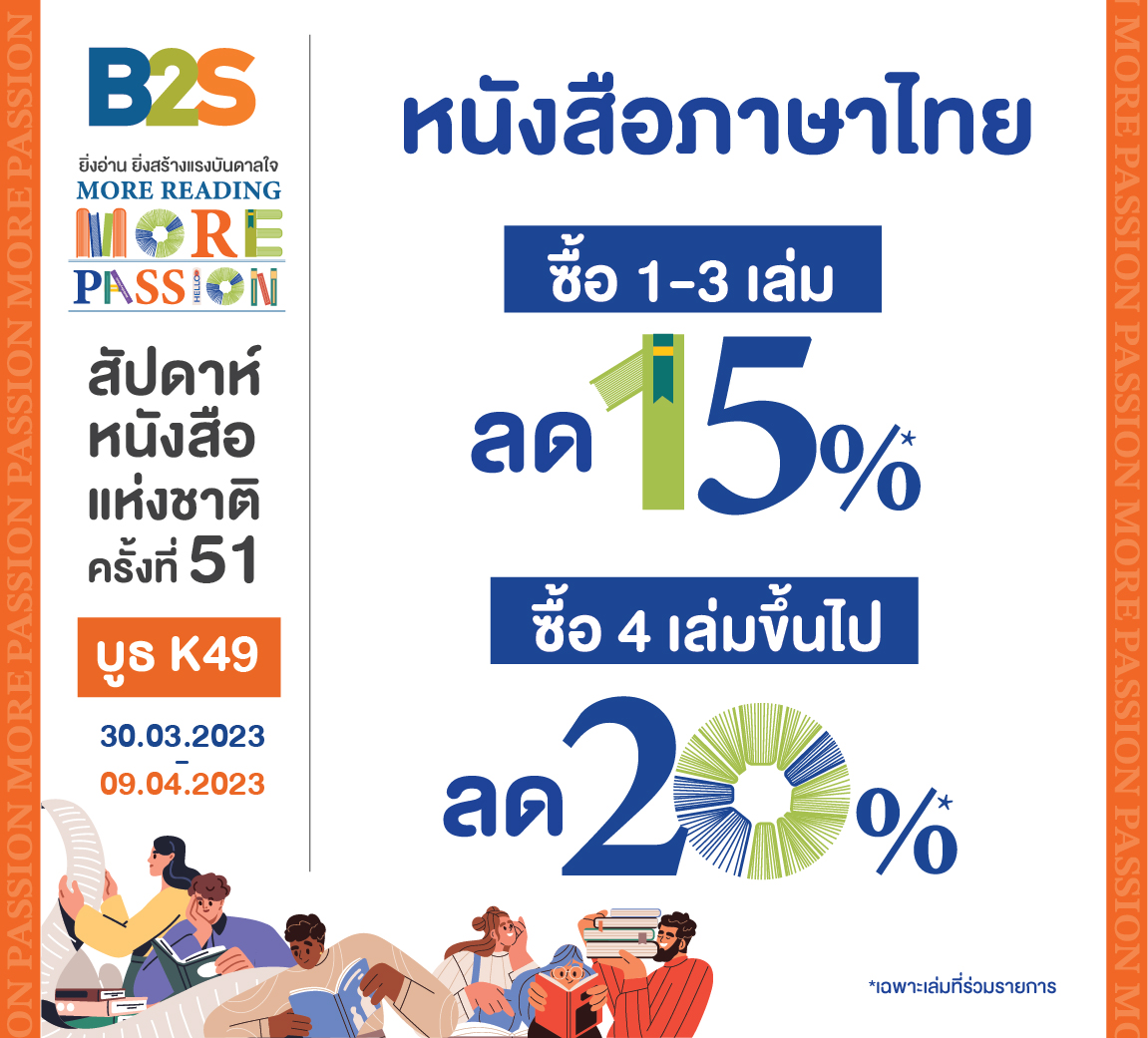 รวมโปรโมชั่นพิเศษจาก B2S สำหรับงานสัปดาห์หนังสือแห่งชาติ ครั้งที่ 51 ณ ศูนย์ประชุมแห่งชาติสิริกิติ์ ชั้น LG บูธ K49 ตั้งแต่วันที่ 30 มีนาคม - 9 เมษายน 2566 ยกทัพมาทั้งหนังสือ นิยายวาย บอร์ดเกม ลด แลก แจก แถมขนาดไหน มาดูกัน!