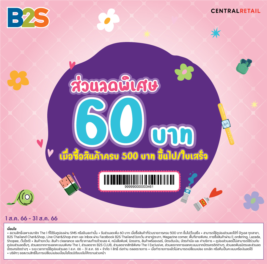 • สามารถใช้คูปองส่วนลดได้ที่ บีทูเอส ทุกสาขา, B2S Thailand Chat&Shop, Line Chat&Shop สาขา และ inbox ผ่าน Facebook B2S Thailand (ยกเว้น สาขาอู่ตะเภา, Magazine corner, พื้นที่ขายพิเศษ, การซื้อสินค้าผ่าน E-Ordering, Shopee, Lazada และเว็บไซต์)