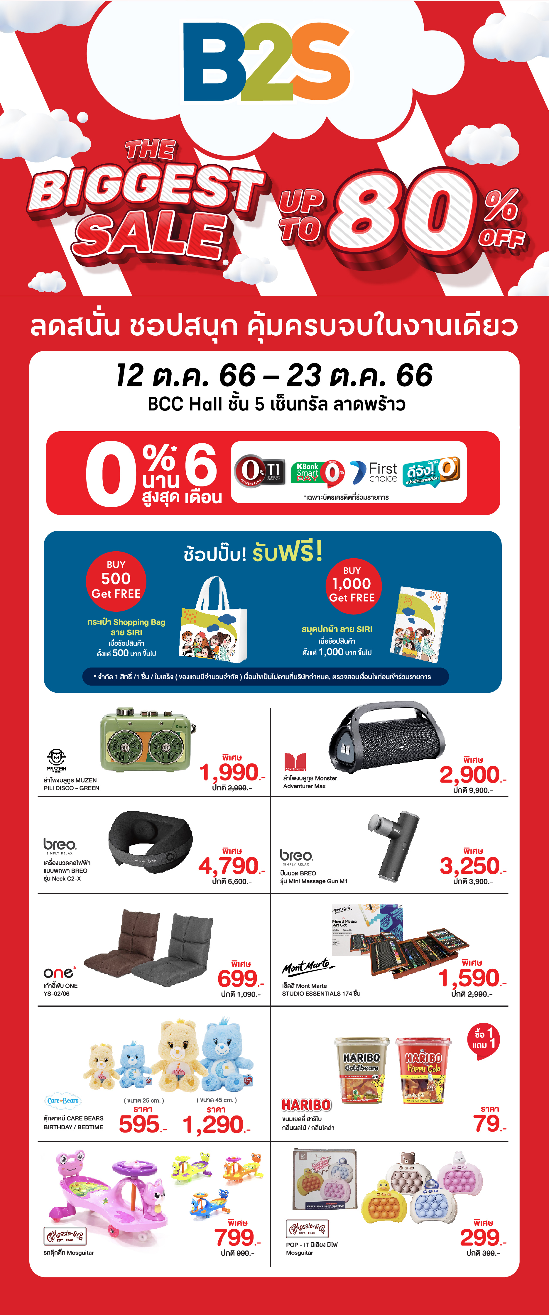 B2S The Biggest Sale! ครบจบในงานเดียว ลดสนั่นสูงสุด 70% พบกัน BCC Hall ชั้น 5 เซ็นทรัลลาดพร้าว 12-23 ต.ค. 66
