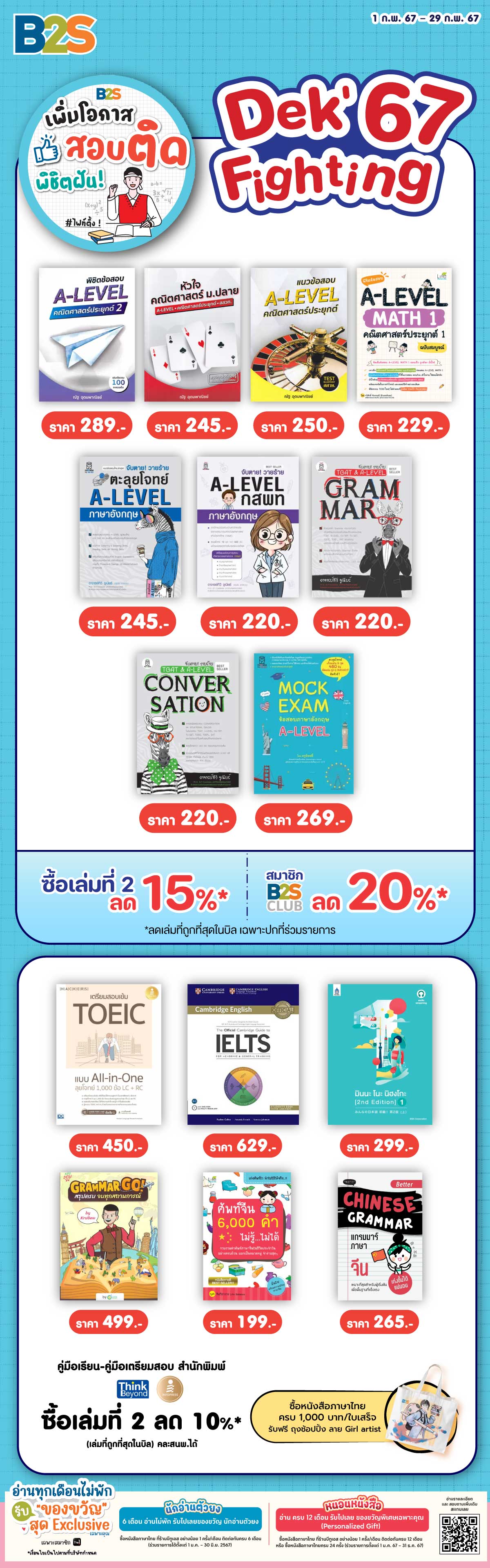 Dek'67 Fighting! รวมหนังสือเตรียมสอบ A-Level และคู่มือเรียนต่างๆ ลดสูงสุด 20%