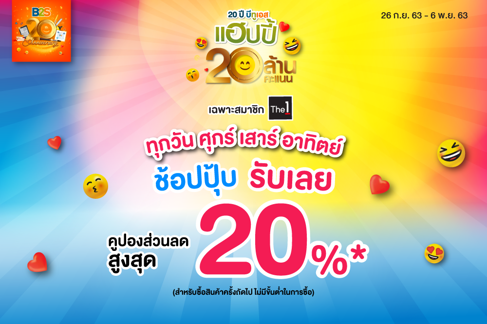 B2S Coupon 20th Anniversary ช้อปปุ้บรับเลยคูปองส่วนลดสูงสุด 20%