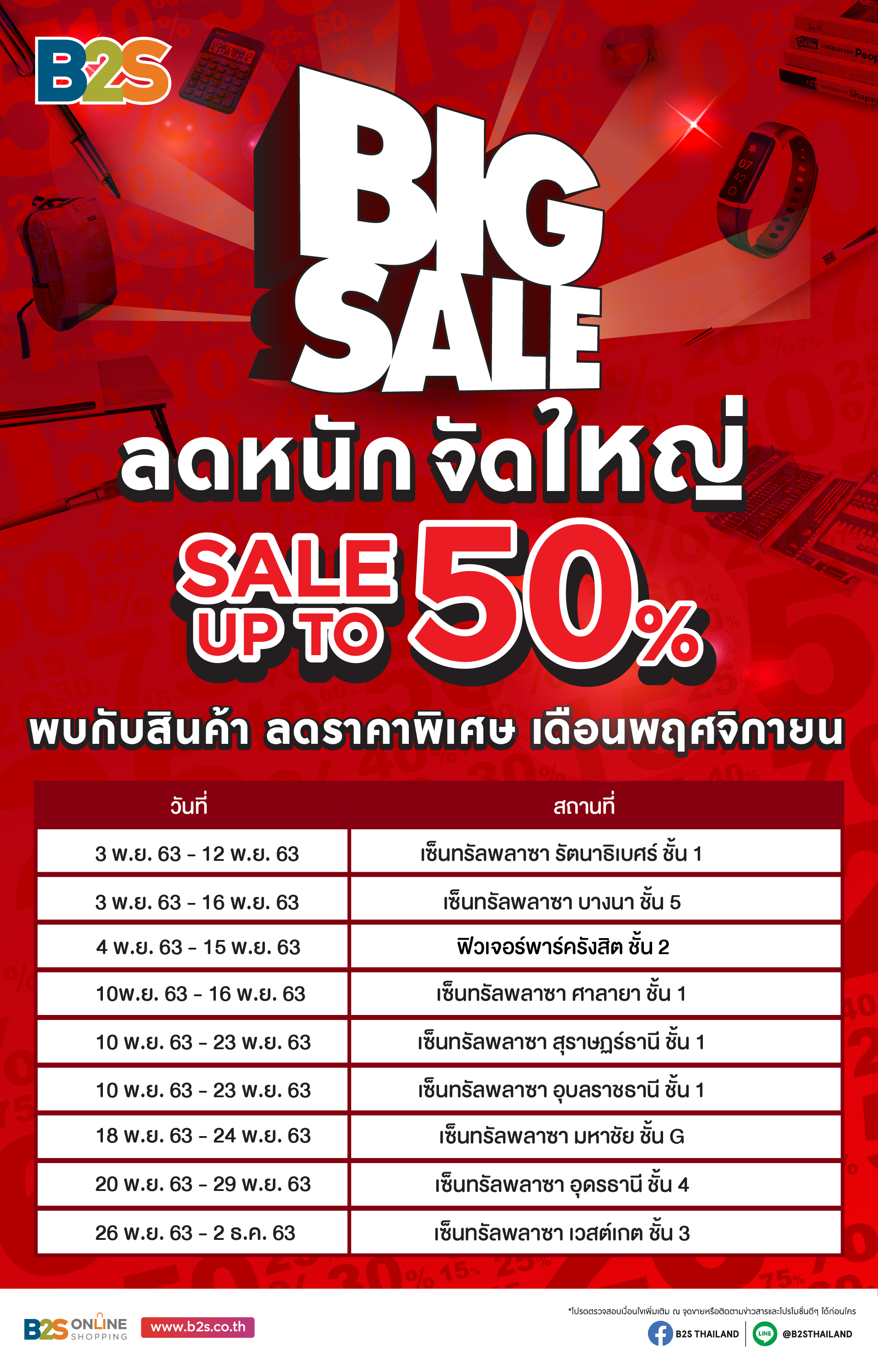 B2S Big Sale ลดหนัก จัดใหญ่ ! พบกับสินค้า ลดราคาพิเศษ และโปรโมชั่นพิเศษมากมายตลอดเดือนพฤศจิกายน 63